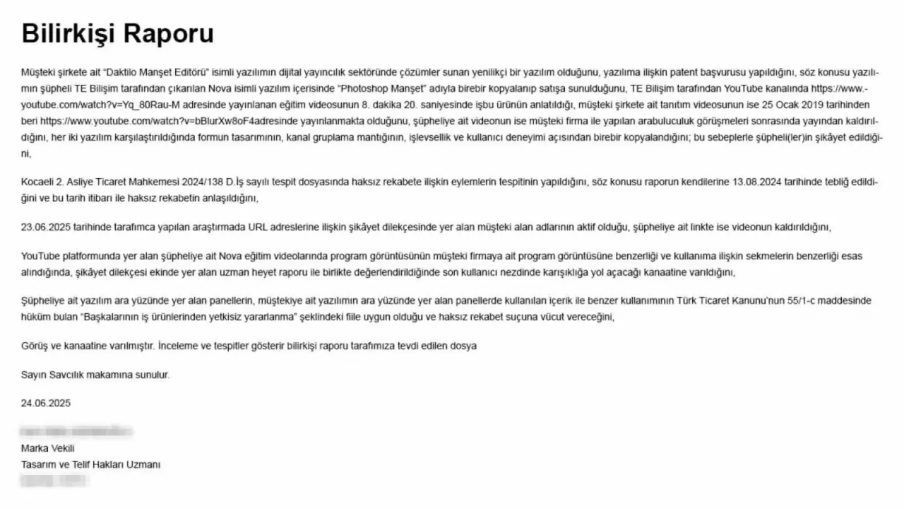 Şikayet dilekçesinde, davalı şirketin ürünü tanıttığı videoyu, arabuluculuk sürecinin ardından yayından kaldırdığı bilgisi de yer aldı. Bu durum, yazılımın geliştirilme sürecine dair iddiaları güçlendiren bir unsur olarak kayıtlara geçti.