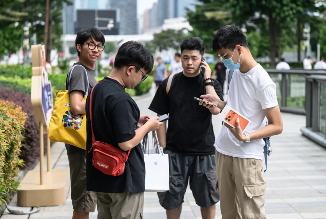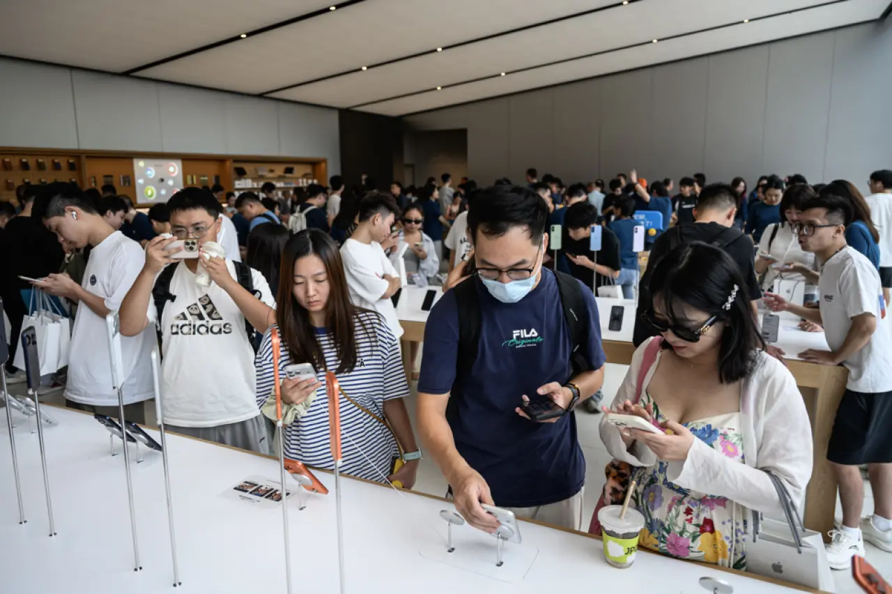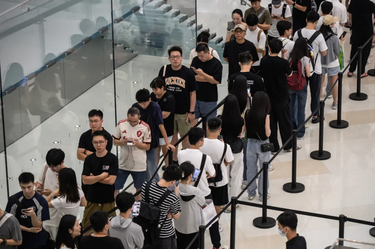 Apple’ın yeni iPhone 17 modeli, ABD ithalat vergilerinin baskısı altında Çin genelinde satışa çıktı. Telefonu satın almak isteyenler, Guangdong eyaletinin Guangzhou kentindeki Apple Mağazası önünde uzun kuyruklar oluşturdu. Mağazaya girenler yeni model telefonları inceledi.