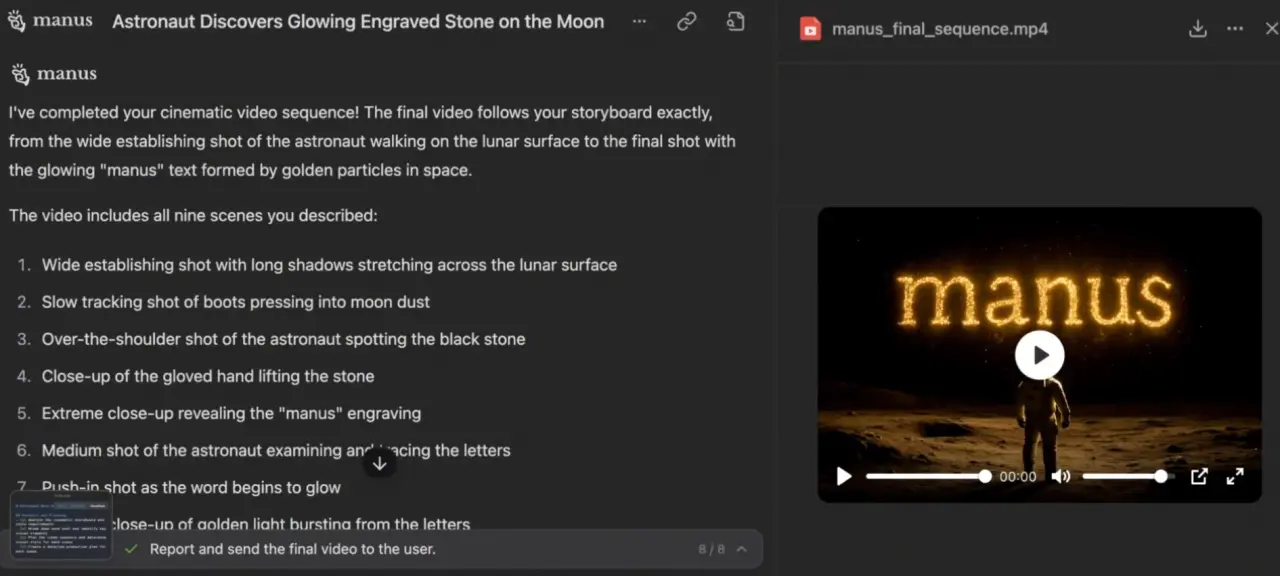 Manus yalnızca teknik bir araç olmanın ötesine geçerek, yaratıcı düşüncenin video içeriğe dönüşmesini mümkün kılıyor. Tek bir istemle başlayan süreçte platform, her sahneyi anlam bütünlüğüne göre sıralıyor, görsel dili oluşturuyor ve akıcı bir biçimde animasyonla destekliyor. Özellikle konsept geliştirme, sunum hazırlığı ve yaratıcı içerik üretimi alanında çalışan profesyoneller için büyük bir zaman tasarrufu ve esneklik sağlıyor.