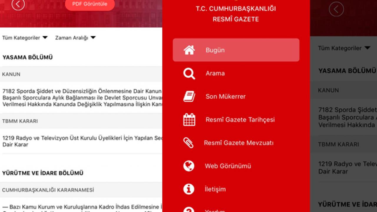 Ayrıca uygulamadaki "PDF Görüntüle" butonundan Resmi Gazete'nin basılabilir PDF formatındaki nüshasına erişilebiliyor.