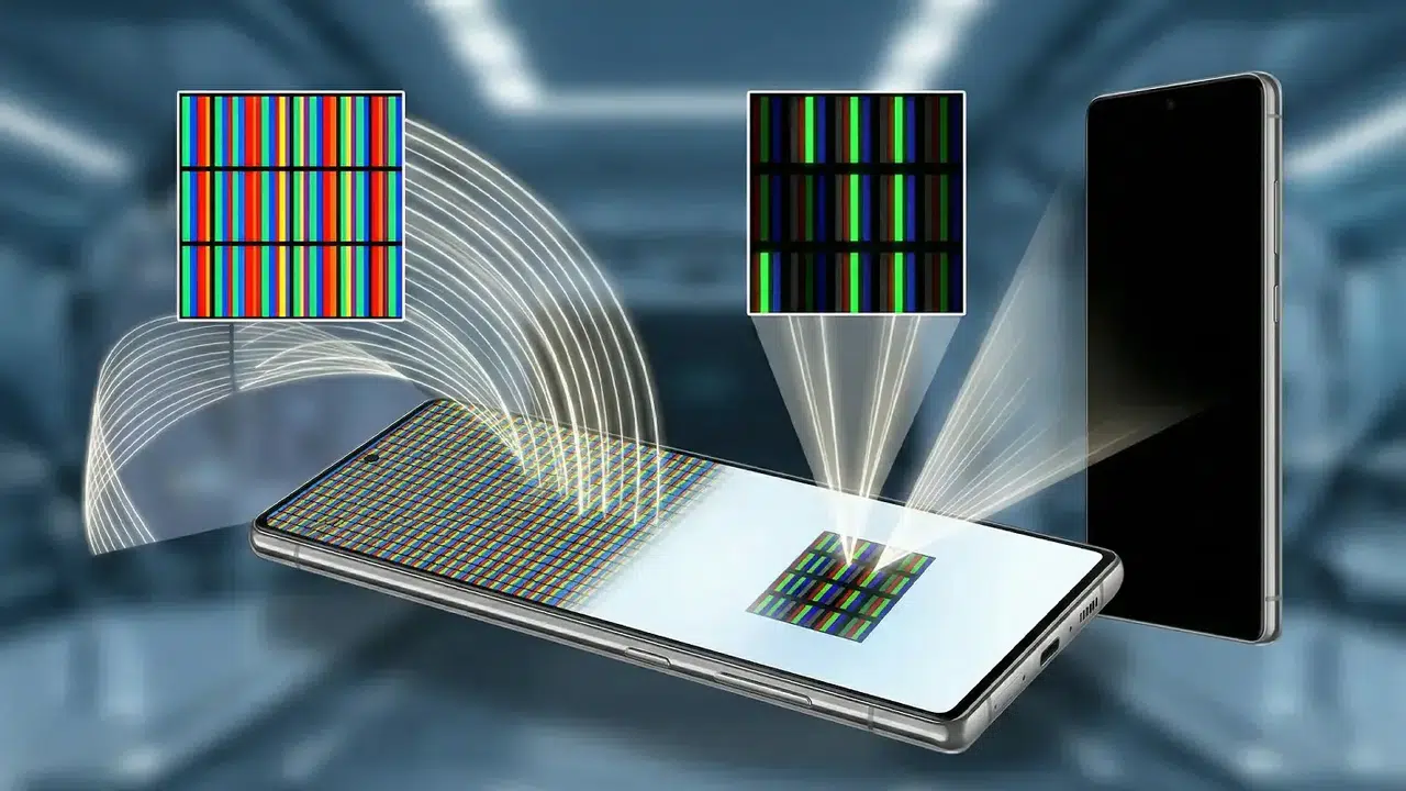 S26 Ultra gizlilik ekranı, ekranın alt piksel düzeni üzerinden çalışan bir sistemle dikkat çekiyor. Yakın plan görüntüler, panelde iki farklı piksel grubunun yer aldığını gösteriyor. Bunlardan ilki daha geniş pikseller; normal kullanımda daha geniş görüş açısı sağlıyor. Diğeri ise dar açıdan görülebilecek şekilde tasarlanmış pikseller.