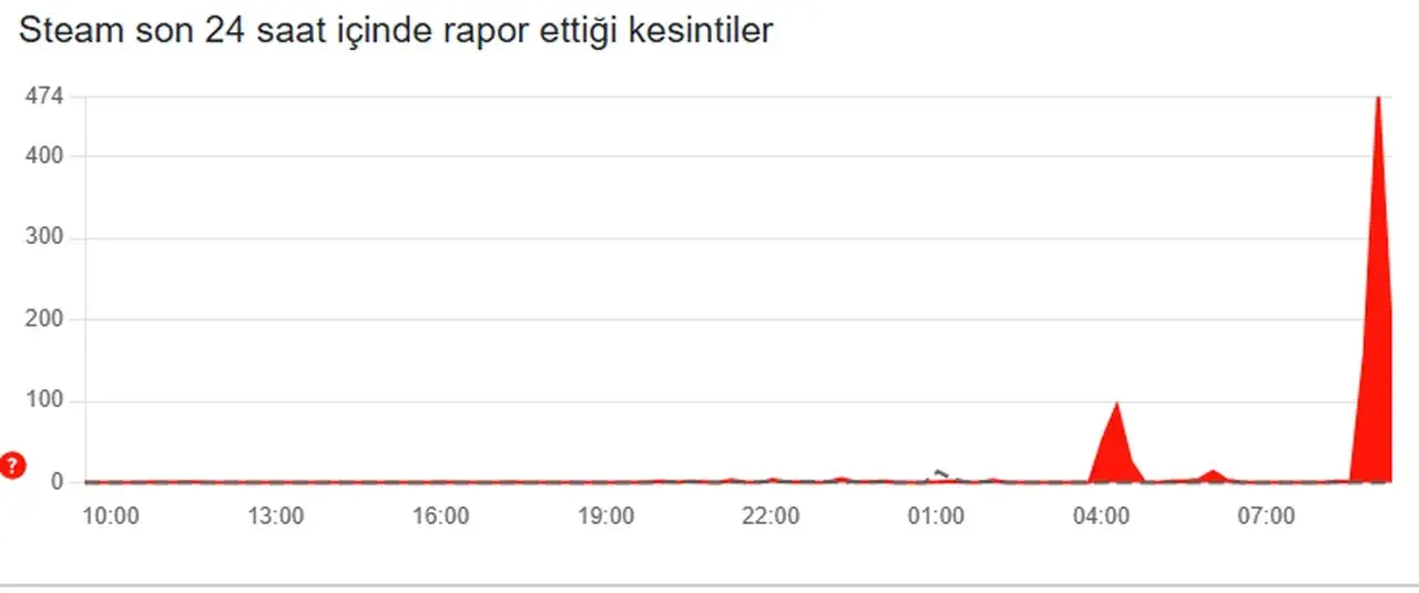 Downdetector verilerine göre Steam sunucularında saat 08.32 itibarıyla yoğun hata raporları gelmeye başladı. Kullanıcıların büyük bölümü, oturum açma ve mağaza sayfasına erişim konusunda sıkıntı yaşadıklarını ifade ediyor. Platformun resmi web sitesinde görünür bir kesinti bilgisi yer almazken, Steam yetkilileri tarafından henüz resmi bir açıklama yapılmadı.
