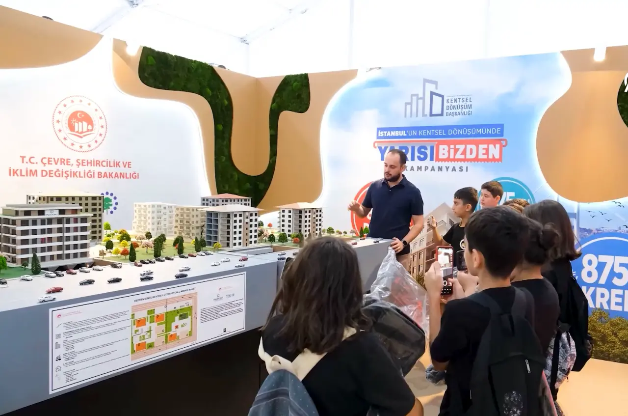 Kentsel Dönüşüm Başkanlığı da etkinlik kapsamında İstanbul'da kentsel dönüşümü hızlandırmak için hayata geçirilen Yarısı Bizden Kampanyası ile ilgili vatandaşları bilgilendiriyor.