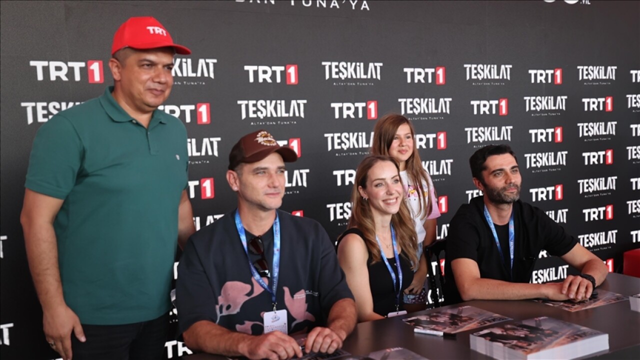 Festivali ziyaret eden "Teşkilat" dizisinin oyuncuları Yunus Emre Yıldırımer, Serdar Yeğin ve Melisa Akman, TRT standında düzenlenen etkinliğe katıldı.