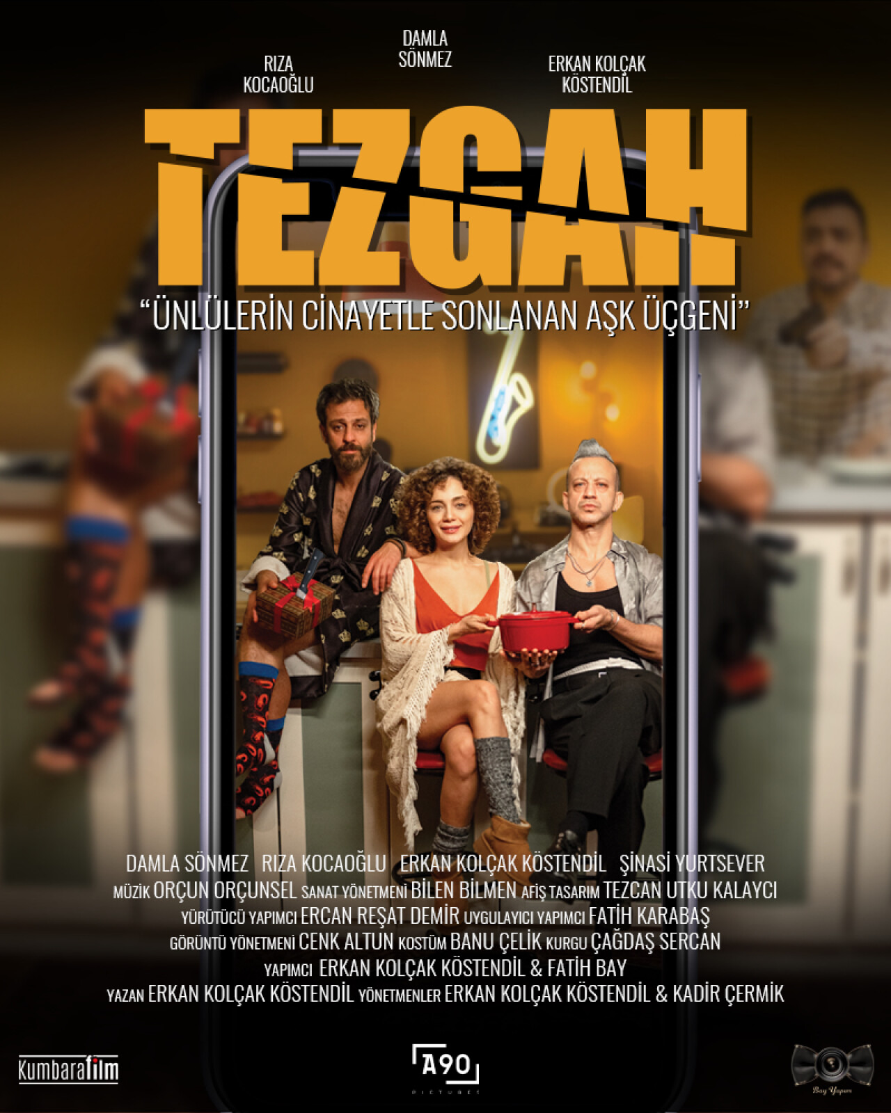 Ünlülerin cinayetle sonlanan aşk üçgenini odağına alan gerilim-komedi türündeki ‘Tezgah’ın yönetmenliğini Erkan Kolçak Köstendil ve Kadir Çermik yaparken müziklerinde Orçun Orçunsel imzası bulunuyor.