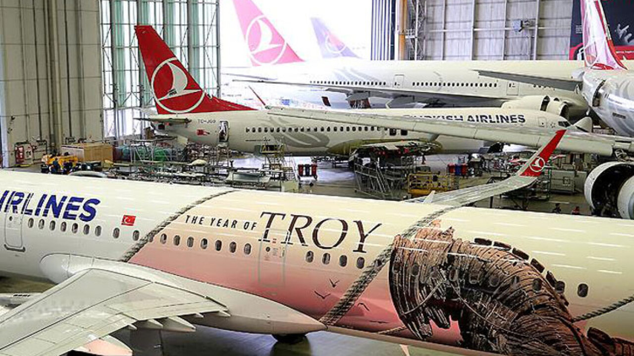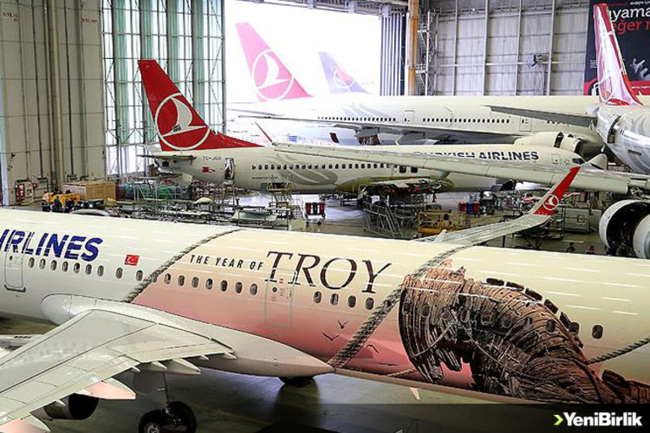 Türk Hava Yolları (THY) "Troya Yılı" dolayısıyla THY filosundaki "A321" tipi bir uçağını Troya temalı giydirdi.