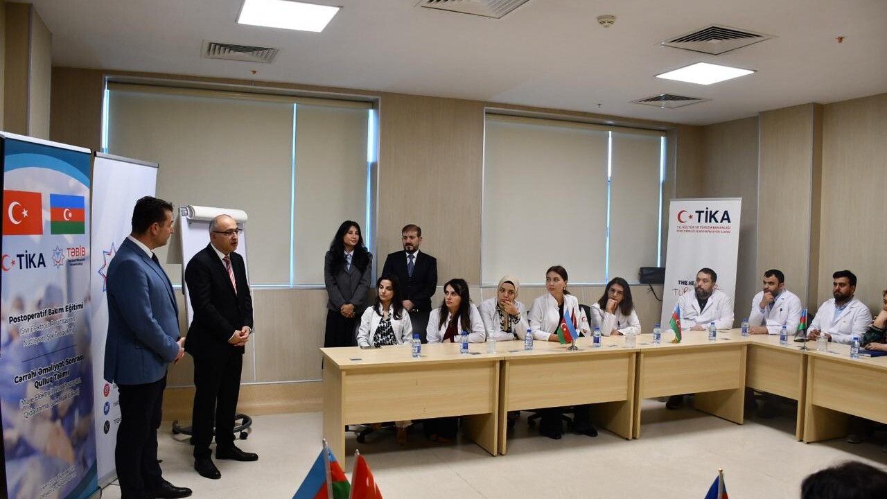 Bakü'de yapılan sertifika törenine TİKA Bakü Program Koordinatörü Hayrettin Özçelik, TABİB yetkilileri, hastane yöneticileri ve doktorlar katıldı.