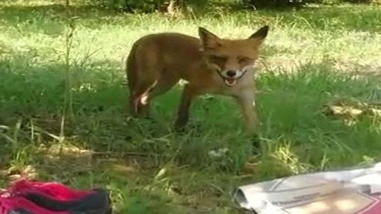 Düzce'de Dilek Şen isimli kadın, fındık topladığı bahçede yemek yerken karşılarına çıkan tilkiyle sohbet etti.