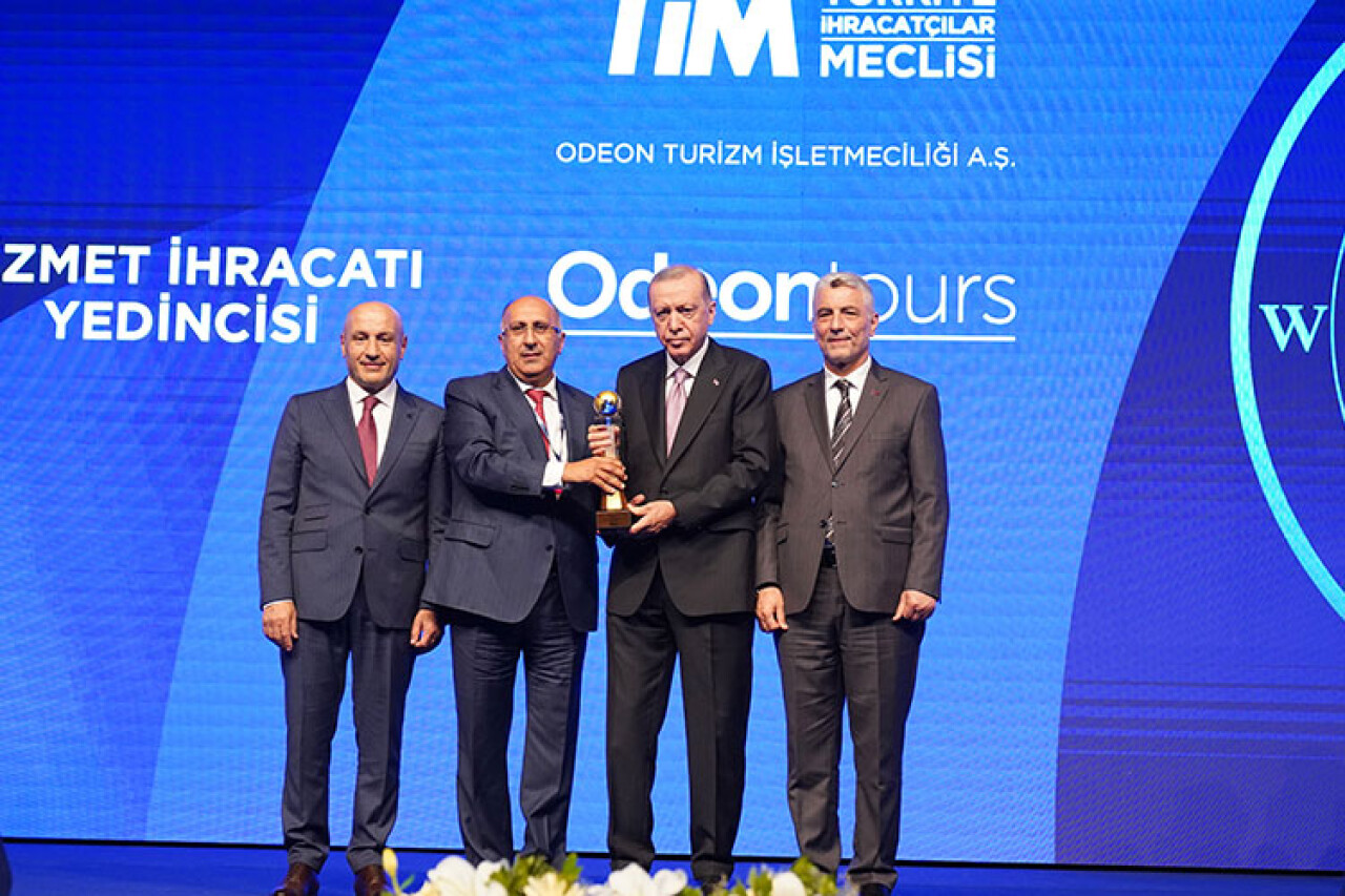 Türkiye İhracatçılar Meclisi'nin (TİM) 31. Olağan Genel Kurulu ve İhracat Şampiyonları Ödül Töreni, Cumhurbaşkanı Recep Tayyip Erdoğan’ın katılımıyla Haliç Kongre Merkezi’nde gerçekleştirildi. ODEON Tours’un, 1000 ihracat şirketi arasında hizmet kategorisinde 7’nci olarak ödüllendirildiği törende, Coral Travel Group Yönetim Kurulu Başkanı Ayhan Bektaş’a ödülü Cumhurbaşkanı Recep Tayyip Erdoğan, Ticaret Bakanı Ömer Bolat ve Türkiye İhracatçılar Meclisi Başkanı Mustafa Gültepe tarafından takdim edildi.