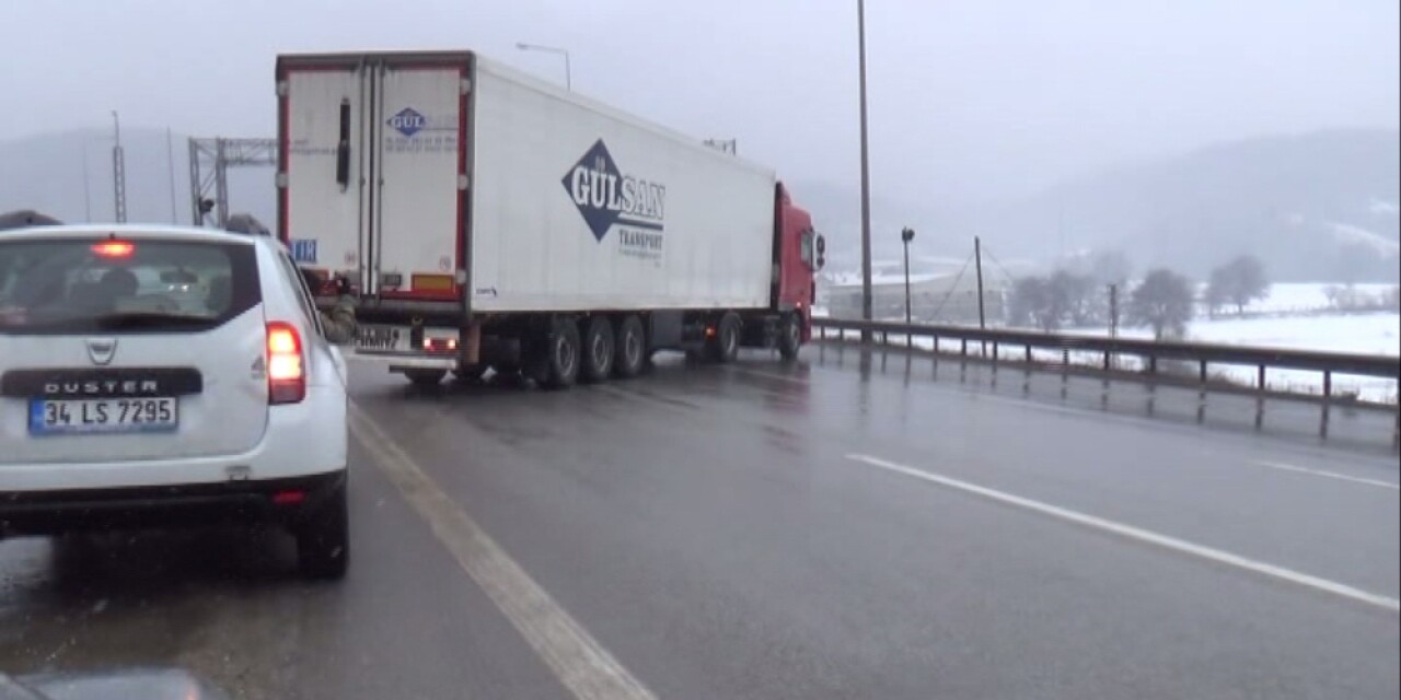 Edinilen bilgiye göre, kaza saat 10:25’de meydana geldi. İstanbul istikametine giden Pevrul Atak yönetimindeki 06 DR 6134 plakalı su damacanası yüklü tır, hafif şekilde devam eden kar yağışı sonrasında direksiyon hakimiyetini kaybederek ilk önce bariyerlere çarptı ardından yol ortasına savruldu. Araçta bulunan damacanalar yola savruldu. Tır sürücüsü Pevrul Atak kazadan yara almadan kurtulurken, ulaşım 30 dakika kapalı kaldı. Yolda uzun araç kuyrukları oluştu. Karayolları ve itfaiye ekipleri yolu temizlemesinin ardından trafik ulaşıma açıldı.