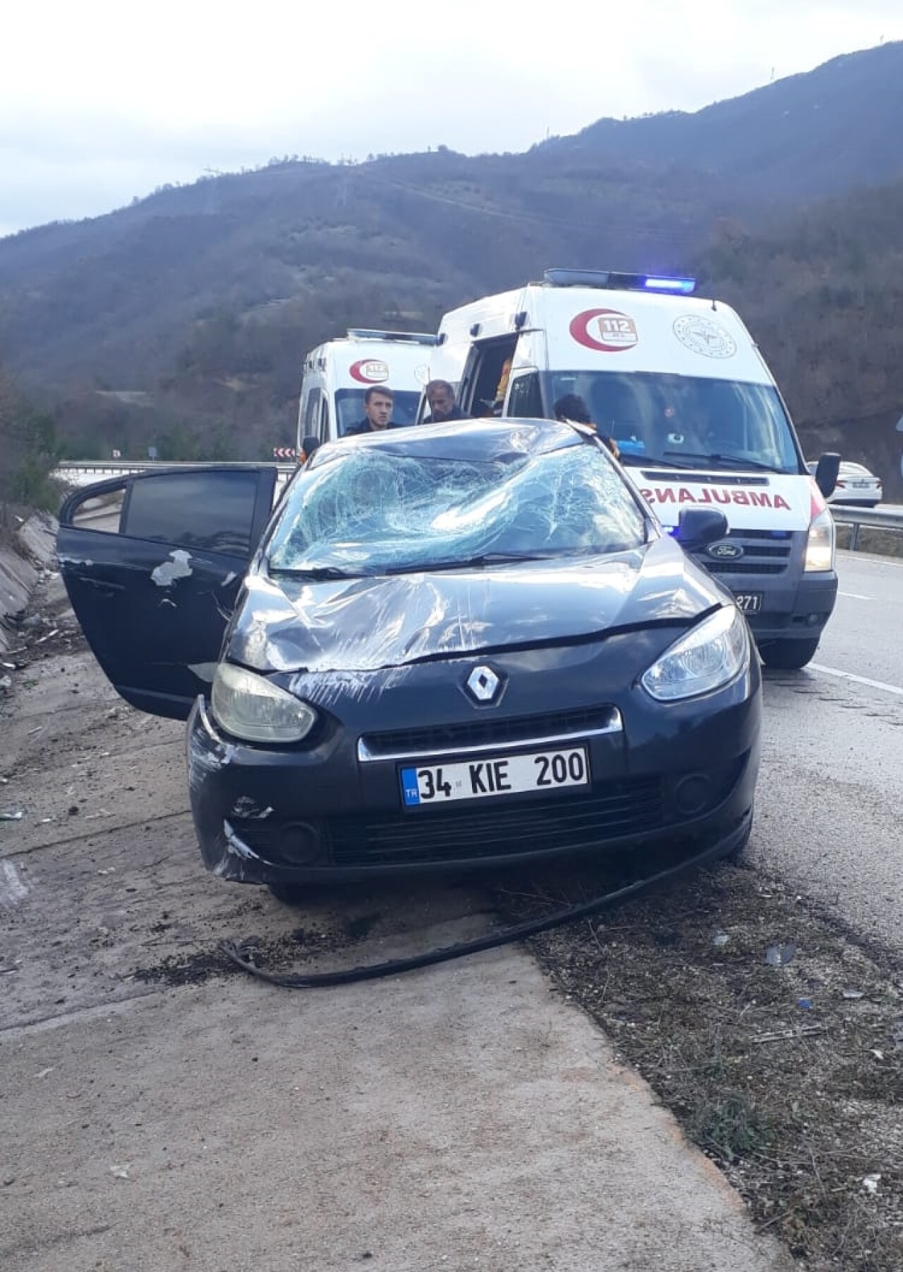 Kazada, sürücüyle araçta bulunan eşi L.D. (38) ve kızı R.D. (18) yaralandı.