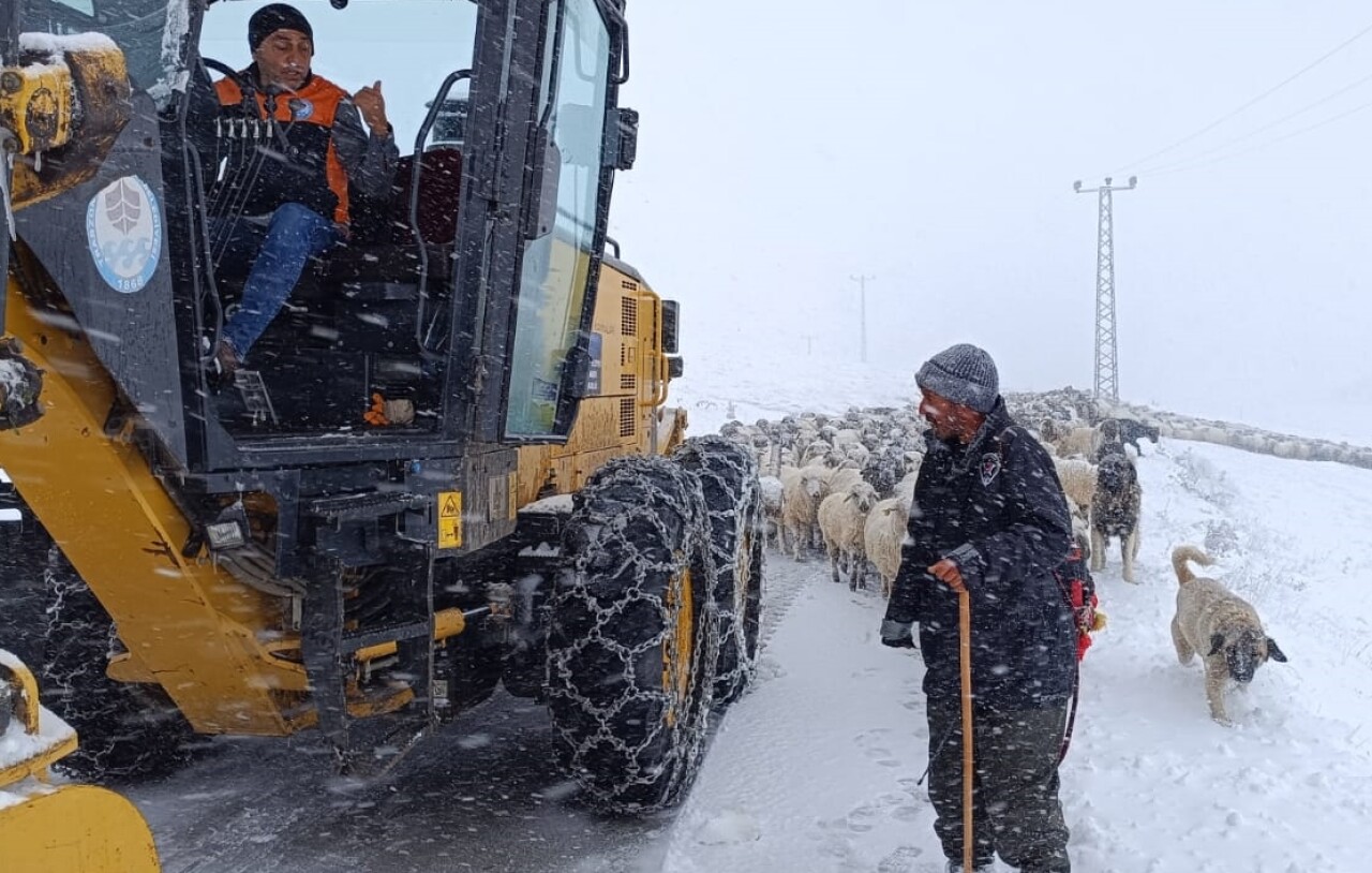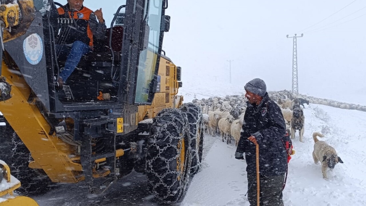 Ekiplerce kar küreme araçları ve iş makineleriyle yollar açılarak, Akbulut ve koyunları kurtarıldı.