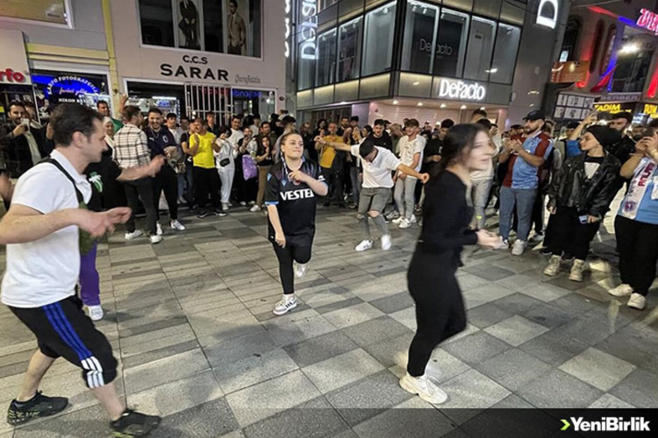 Maçın bitmesinin ardından Uzun Sokak'ta toplanan Trabzonspor taraftarları, takımlarının galibiyetlerini coşkuyla kutladı.