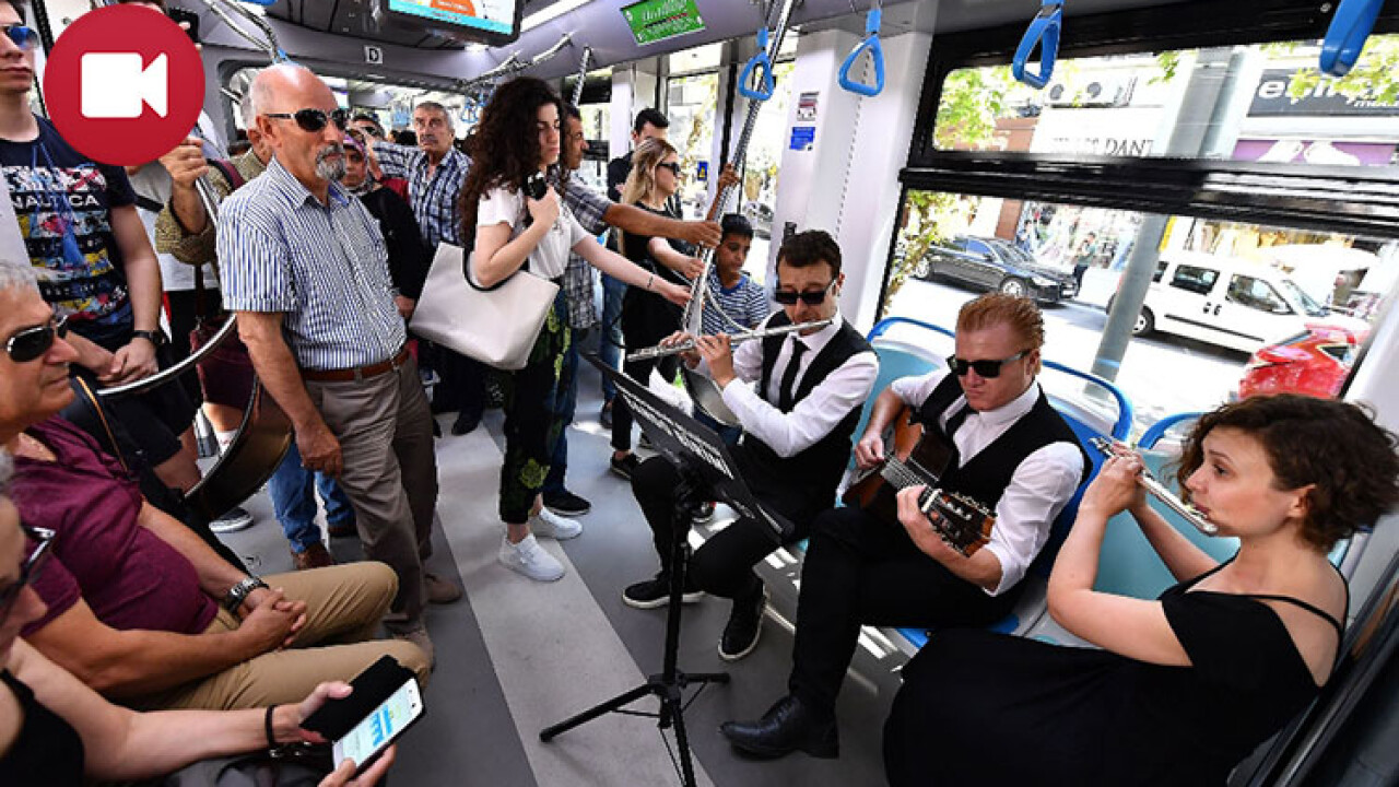 İzmir Büyükşehir Belediyesi Pop Orkestrasından sanatçıların yer aldığı iki ve üç kişilik müzisyen grupları, enstrümantal parçalarla müziği toplu ulaşıma taşıyor.