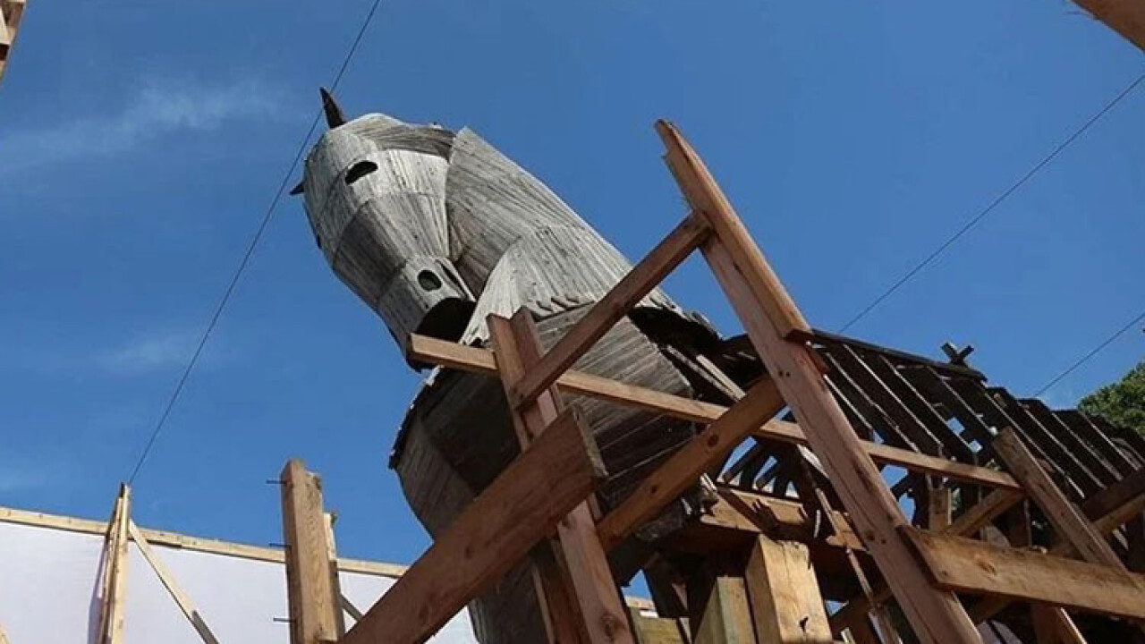 Çam kerestesi kullanılarak inşa edilen tahta atın içine giren ziyaretçiler, Homeros'un İlyada ve Odysseia destanlarında milattan önce 500'lü yıllardaki Troya Savaşı'nda geçen savaş hilesini daha iyi anlama imkanı buluyor.