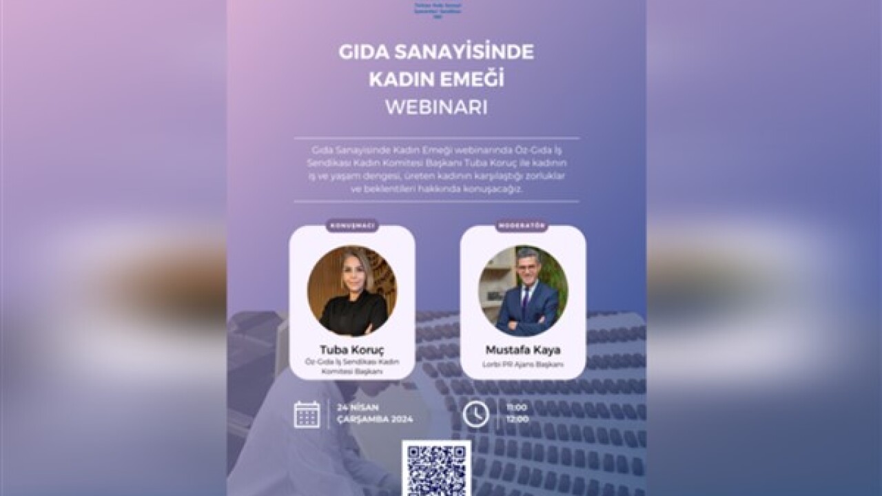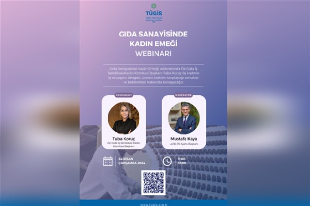 Türkiye Gıda Sanayii İşverenleri Sendikası (TÜGİS), gıda sektörü içerisindeki bilgi akışına katkı sağlamak ve bilgi kirliliğinin önüne geçmek hedefiyle 2023 yılında başlattığı webinar serisine hızla devam ediyor. TÜGİS, son olarak Öz-Gıda İş Sendikası Kadın Komitesi Başkanı Tuba Koruç’un konuk olduğu “Gıda Sanayisinde Kadın Emeği” webinarıyla, iş gücünde ve sendikal hayatta kadınların karşılaştığı zorluklara değinecek. Kadınların iş hayatındaki beklentilerinin de ele alınacağı webinar 24 Nisan Çarşamba 11.00-12.00 arasında gerçekleşecek.