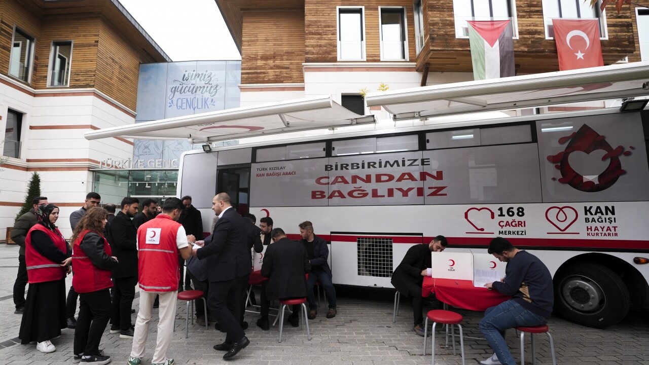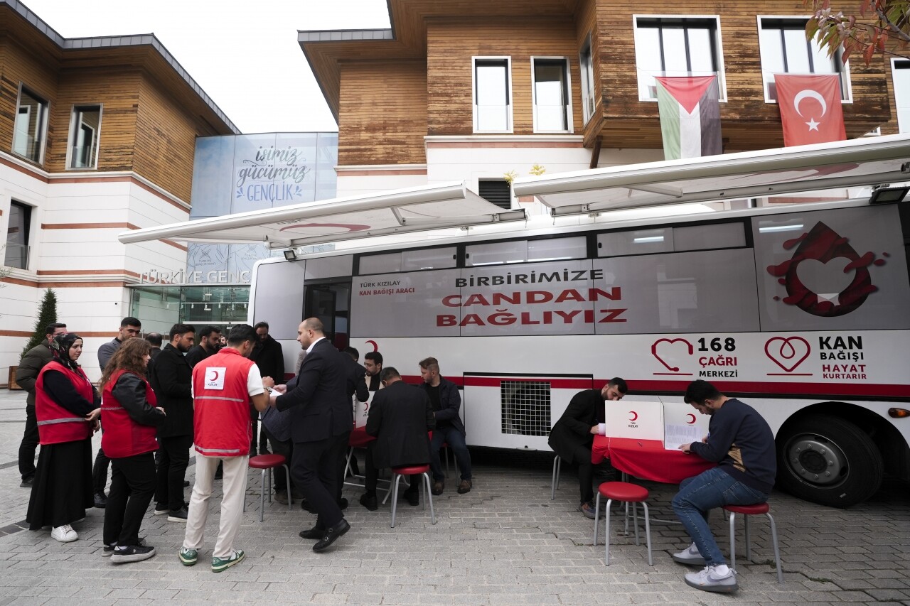 Eyüpsultan'daki vakfın bahçesinde, Türk Kızılay'ın araçlarında vatandaşlar gün boyu kan bağışında bulunabiliyor.