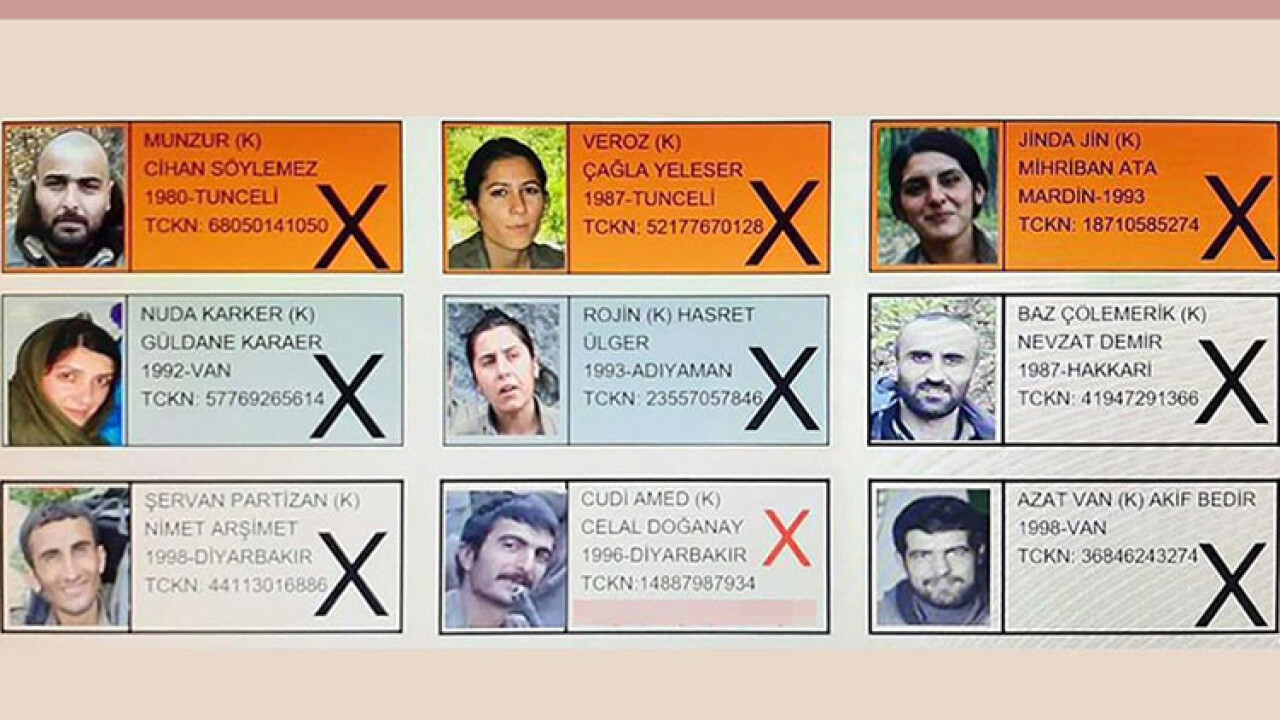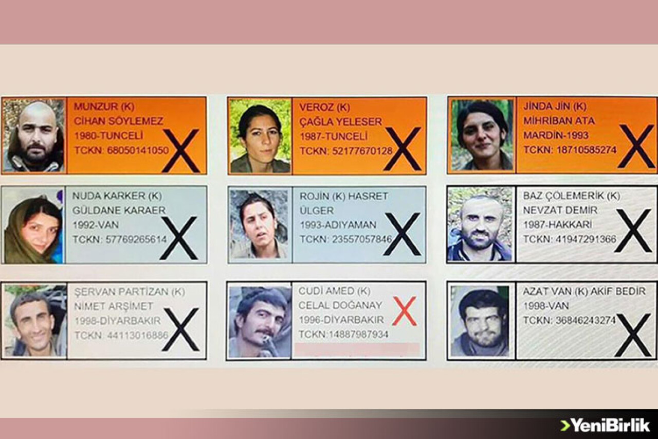 Açıklamada, aynı kategoride yer alan diğer iki teröristin ise Tunceli kırsalında örgütün sözde kadın sorumlusu "Veroz" kod adlı Çağla Yeleser ve Tunceli Hozat kırsalında "sorumlu" düzeyde faaliyet yürüten "Jinda Jin" kod adlı Mihriban Ata olduğunun belirlendiği kaydedildi.