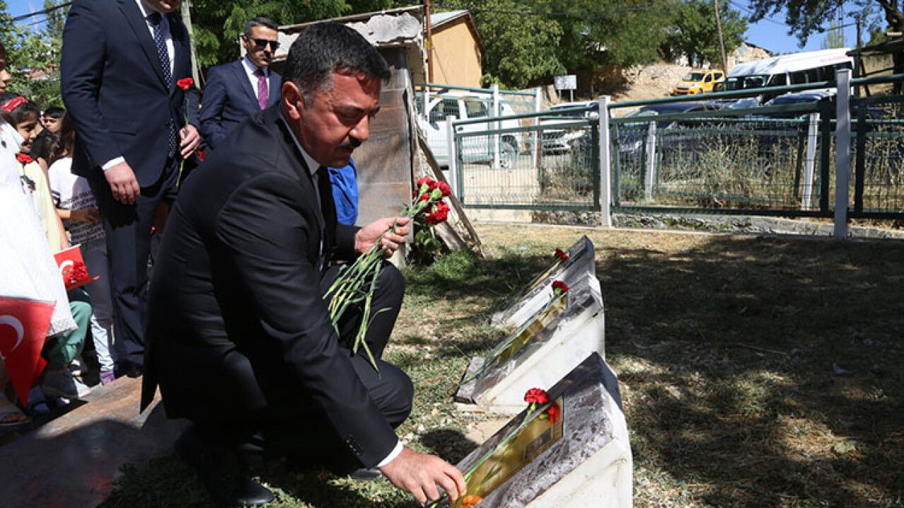 Daha sonra öğretmenler anısına yaptırılan şehitliğe karanfiller bırakıldı.