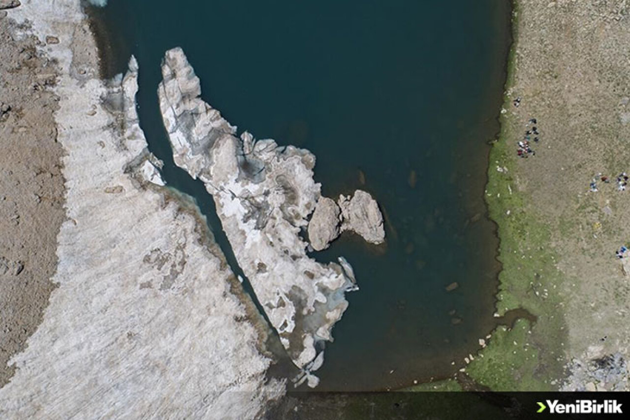 Buradaki hazırlıkların ardından tırmanışa başlayan doğa tutkunları, dağlık arazide yer alan patikada yaklaşık 2 saat yürüyüp göle ulaşıyor.