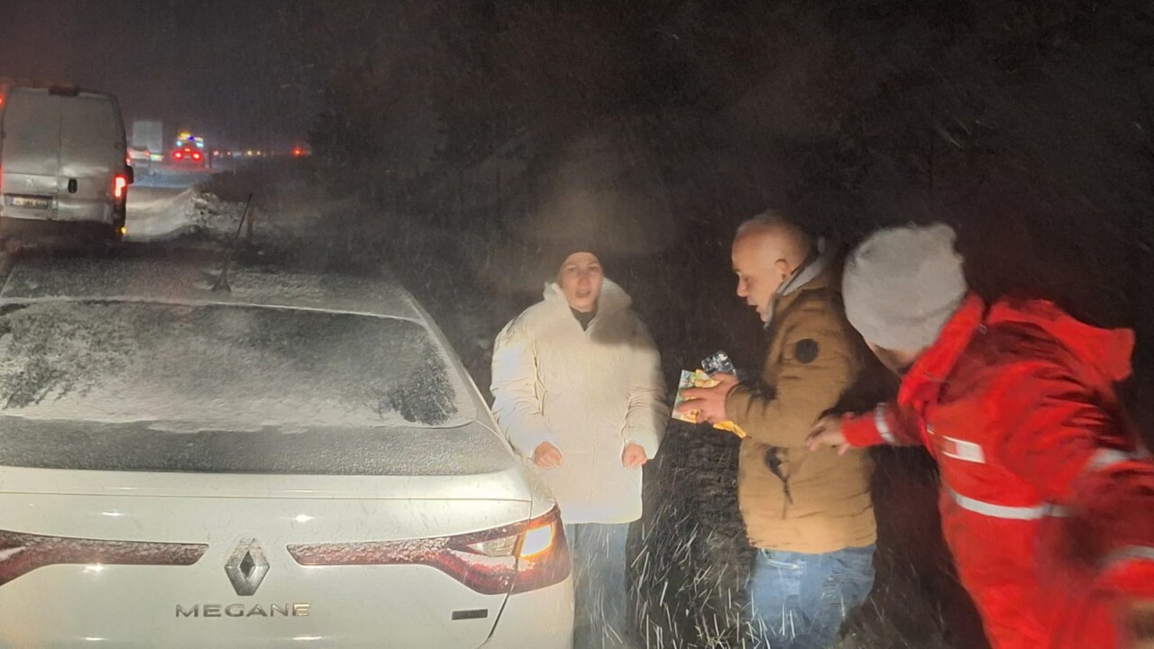 Hafta sonu boyunca müdahale ekipleri ve araçlarıyla sahada çalışmalarını sürdüren Kızılay ekipleri, hem araçlarında mahsur kalan hem de en yakındaki misafirhanelere yönlendirilen vatandaşlara kumanya ve battaniye dağıtarak soğukla mücadelelerine destek oldu.