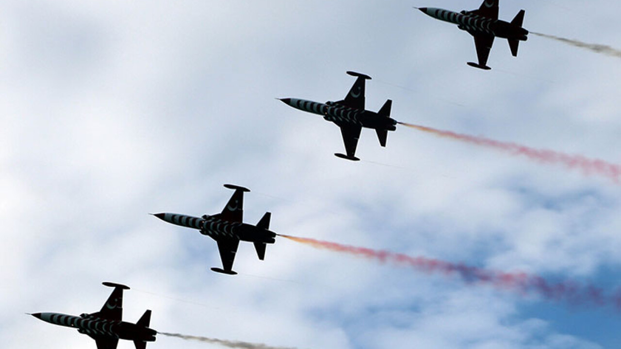 Yaklaşık 20 dakika havada kalan tim, daha sonra kent semalarından ayrıldı.