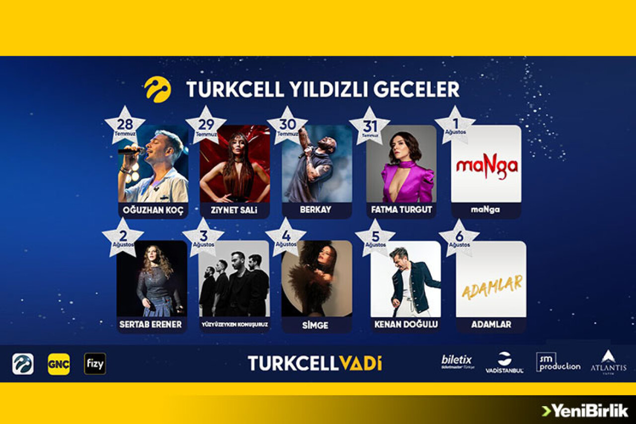 Turkcell Yıldızlı Geceler konserleri, bu yıl da müzik tutkunlarını sevdikleri sanatçılarla buluşturuyor. 28 Temmuz’da Oğuzhan Koç konseriyle Turkcell Vadi Açık Hava Sahnesi’nde başlayan konser serisi, 6 Ağustos’a kadar sürecek. Türkiye’nin önde gelen müzik grupları ve yıldız sanatçılarını hayranlarıyla buluşturacak . Turkcell Vadi Açık Hava Sahnesi’nde toplanacak atıkların gelirleri de “Eğitime Dönüştür” projesi kapsamında deprem bölgesindeki çocukların nitelikli eğitimine katkı sağlamak için kullanılacak. İşitme ve görme engelli davetlilere için de özel etkinliklerin düzenleneceği konserlerin biletlerini Turkcell Platinum müşterileri ve fizy kullanıcıları avantajlı fiyatlarla satın alabilecek.