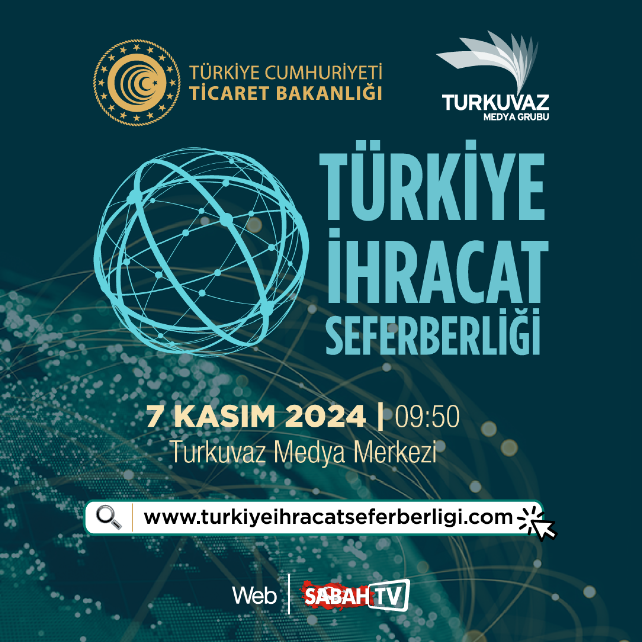 Turkuvaz Medya tarafından düzenlenen, “Türkiye İhracat Seferberliği Programı”, 7 Kasım 2024, Perşembe günü T.C. Ticaret Bakanı Prof. Dr. Ömer Bolat’ın katılımıyla gerçekleşecek. İhracatta 2025 beklentileri ve finansmanda yeni yolların değerlendirileceği bu etkinlikte, T.C. Ticaret Bakanı Prof. Dr. Ömer Bolat başta olmak üzere sektörün önde gelen isimleri görüşlerini paylaşacak. Etkinlikte ayrıca, ihracatın finansmanına yönelik yeni çözümler ve sektörün gelişimi için öncelikli adımlar ele alınacak.