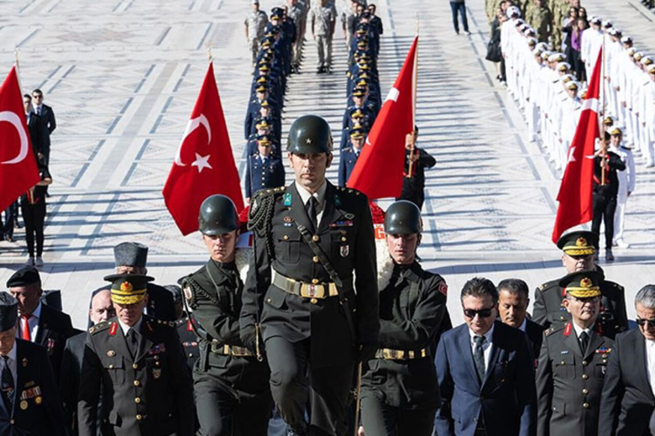Konuşmanın ardından Atatürk Anıtı önüne, Ankara Valiliği, Türk Silahlı Kuvvetleri, Ankara Büyükşehir Belediyesi ve Türkiye Muharip Gaziler Derneği çelenkleri bırakıldı.