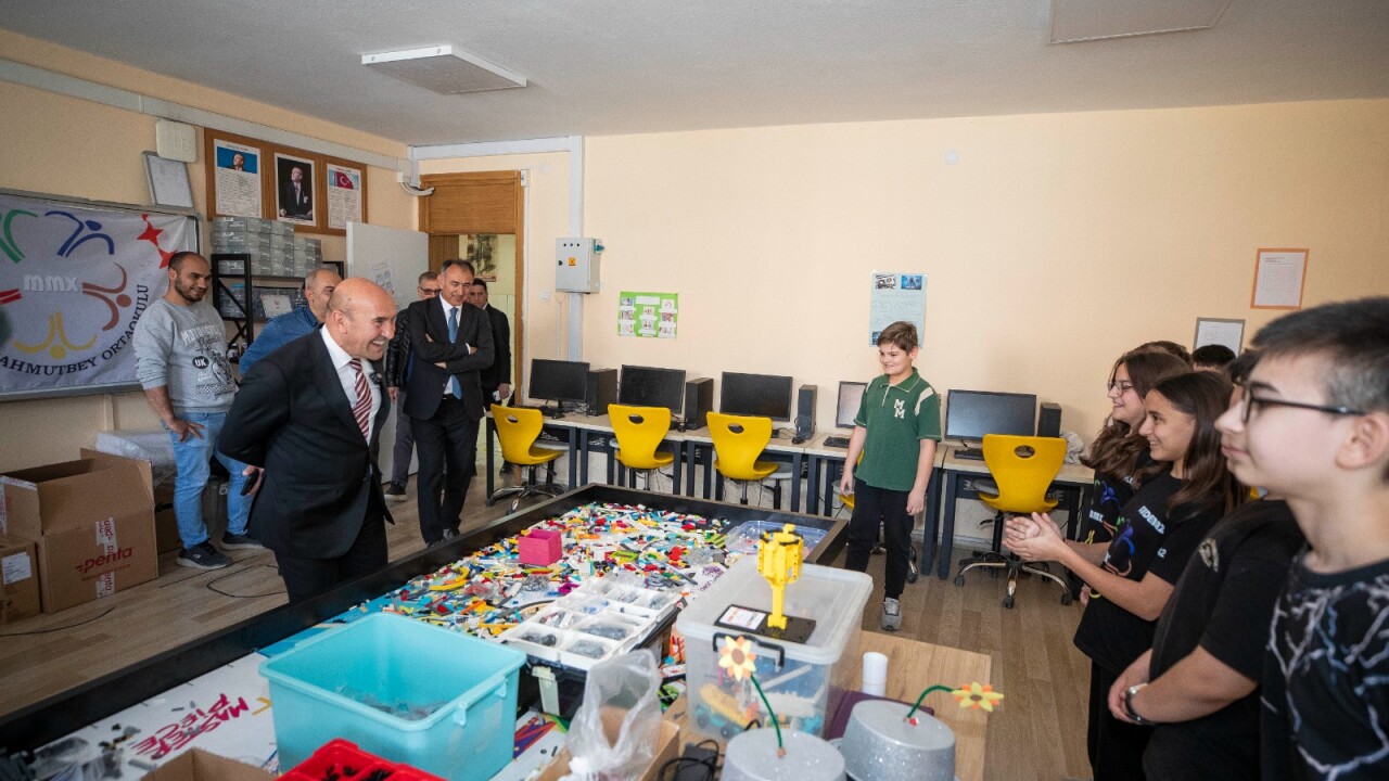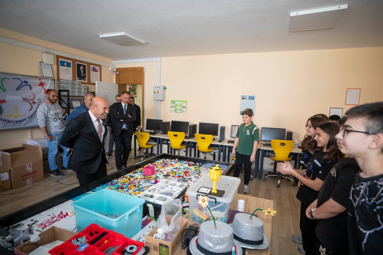 Başkan Tunç Soyer Türkiye’nin su döngüsü ile yağmur suyu yönetimi yapılan ilk sünger okulu olan Bornova Çamdibi Mahallesi’ndeki Mediha Mahmut Bey Ortaokulu’nu ziyaret etti.