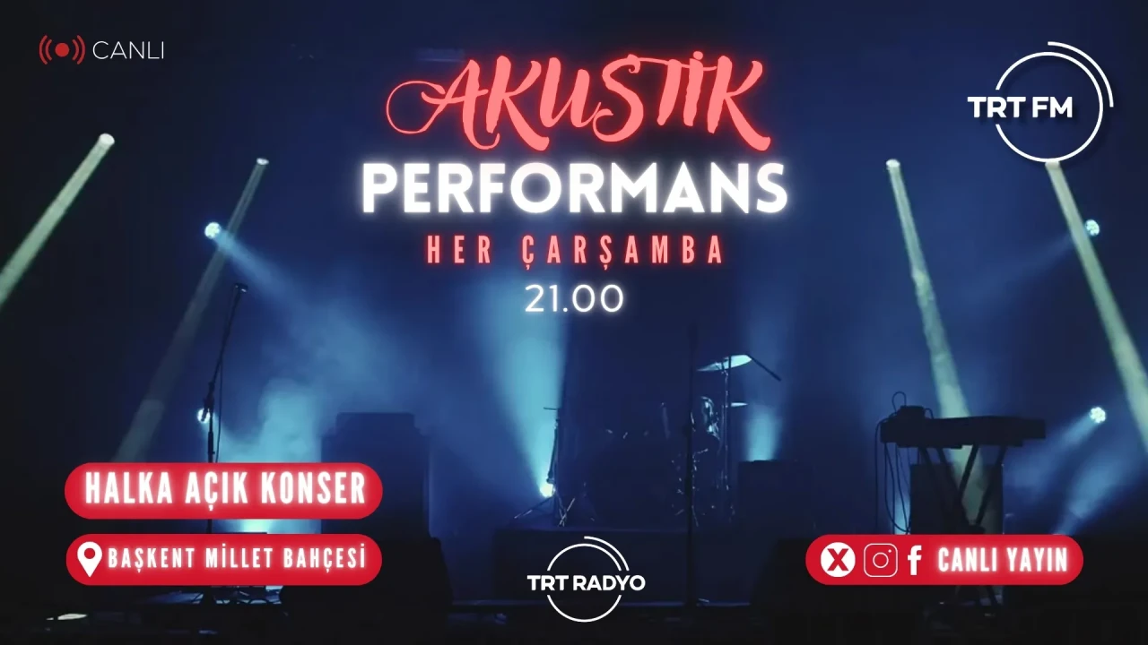 Türkiye Radyo Televizyon Kurumu’nun köklü radyo markası TRT FM, radyo yayıncılığını alışılmış kalıpların dışına taşıyarak yaz mevsimine damgasını vuran yepyeni bir projeye imza attı. Ankara’daki Başkent Millet Bahçesi’nde her çarşamba akşamı saat 21.00’de düzenlenen “Akustik Performans” konser serisi, sadece kulaklara değil, gönüllere de hitap ediyor.