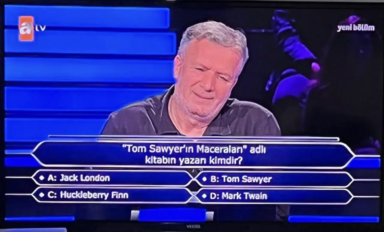 Kim Milyoner Olmak İster’de Oktay Kaynarca’nın yönelttiği bu soru, dünya edebiyatının en bilinen eserlerinden biriyle ilgiliydi. “Tom Sawyer’ın Maceraları” kitabı üzerine sorulan soru, yarışmacıyı olduğu kadar ekran başındaki izleyicileri de düşündürdü. Şıklar arasında yer alan isimler kafa karıştırırken, sosyal medyada ve arama motorlarında yoğun bir araştırma başladı.