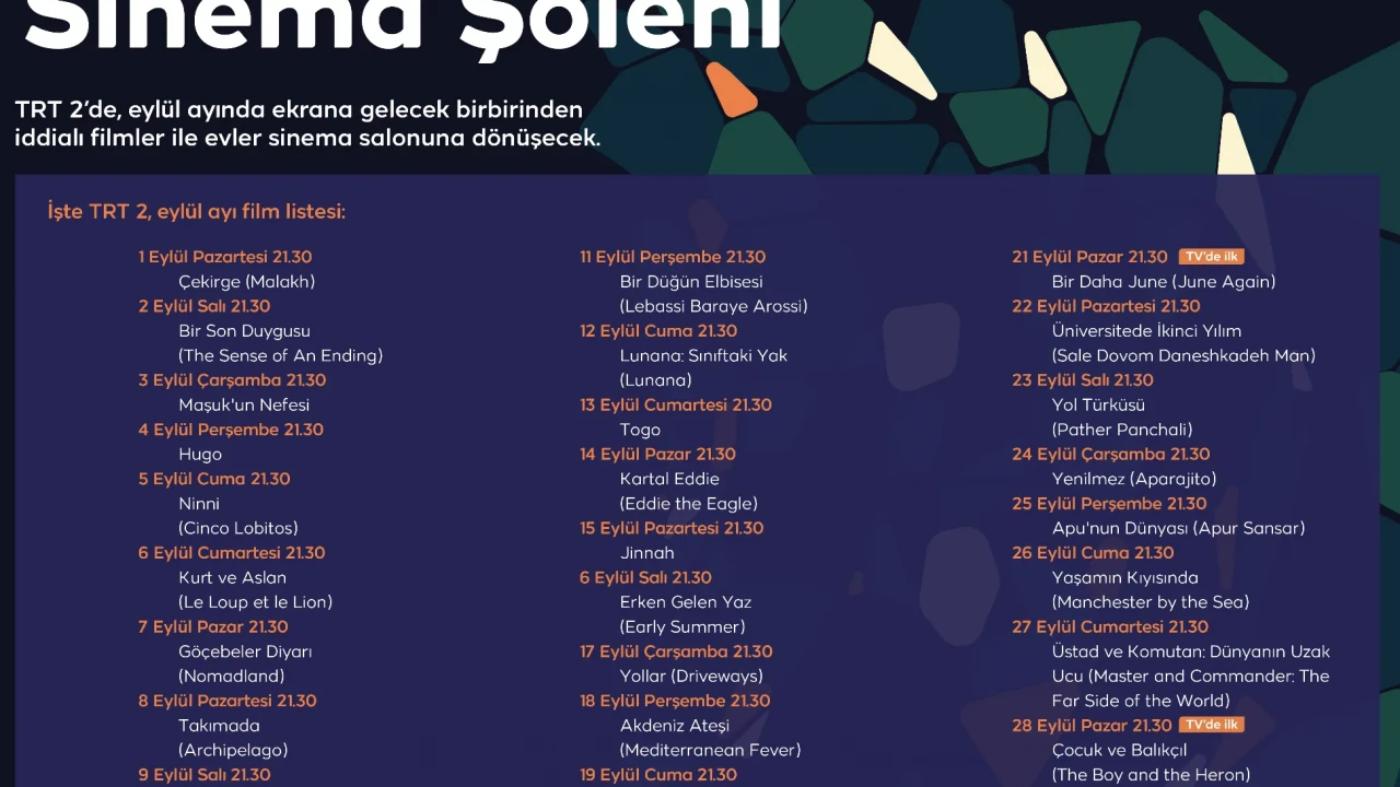 Eylül ayı programı da bu vizyonun bir yansıması. Sinemayı sadece eğlence değil, bir düşünce biçimi, bir anlatı dili olarak gören TRT 2, seçkisini bu anlayışla oluşturuyor. Özellikle kültürel bağlamda değer taşıyan filmlerle izleyicisini zenginleştirmeyi hedefliyor.