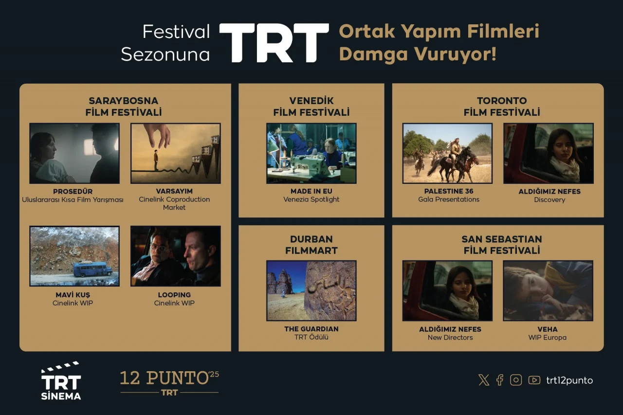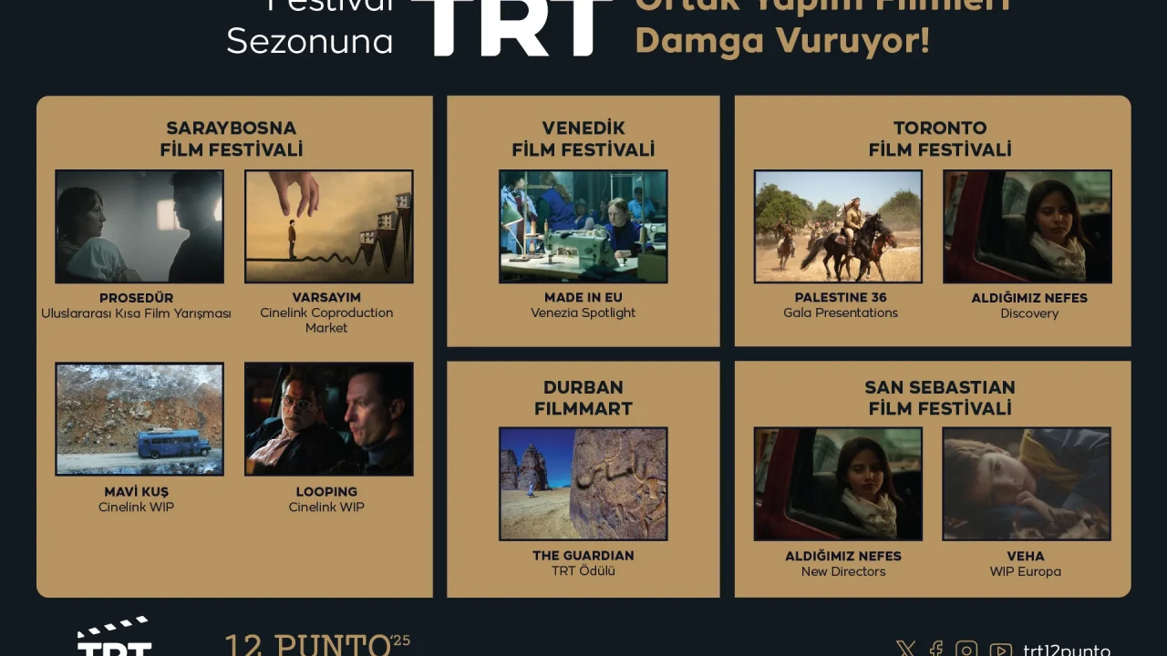 TRT ortak yapımı filmler, bu yıl dünyanın dört bir yanında düzenlenecek prestijli festivallerde yarışarak uluslararası arenada Türkiye’nin sinema gücünü temsil edecek. Saraybosna’dan Venedik’e, Toronto’dan San Sebastian’a uzanan geniş yelpazede sekiz film, farklı kategorilerde izleyicilerin karşısına çıkacak.