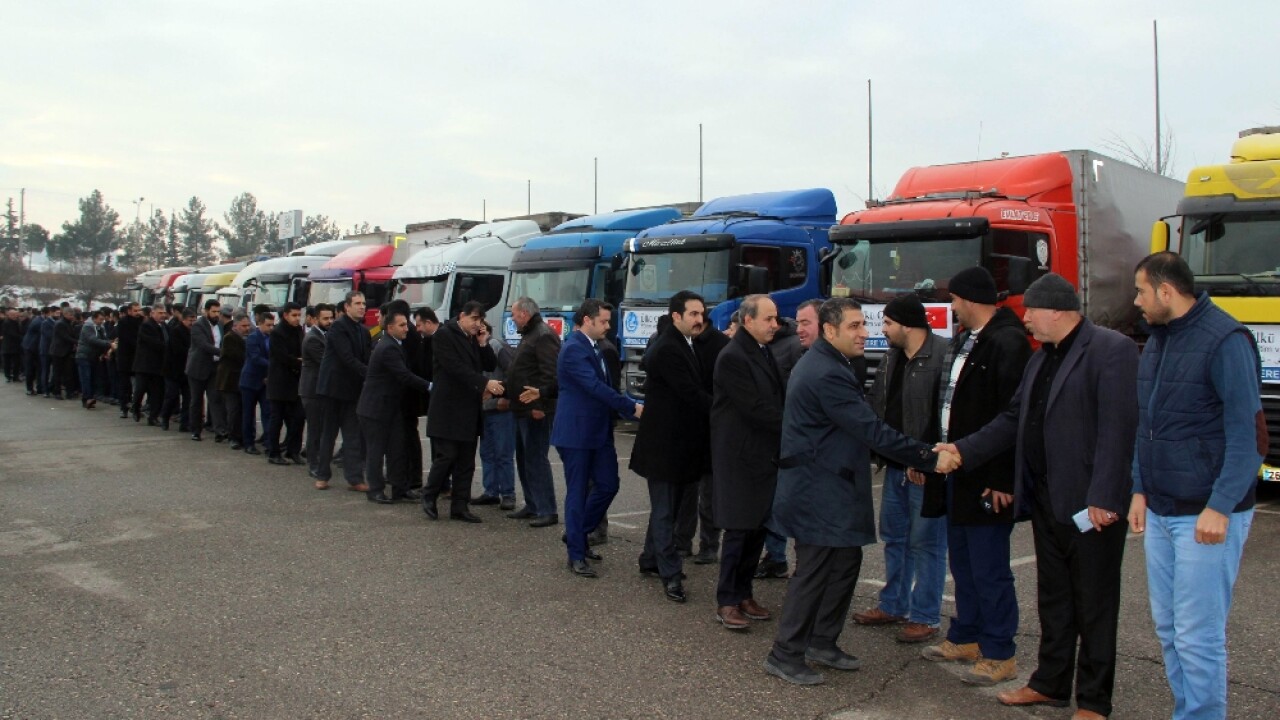 Programın ardından ülkücüler el sallayarak tırları uğurladı. Klakson eşliğinde alandan ayrılan tırların bir kısmı Halep’e geçmek için Hatay’daki Cilvegözü Sınır Kapısı’na, diğer kısmı ise Azez El-Bab bölgesine hareket etmek için Kilis Öncüpınar Sınır Sapısına doğru hareket etti.
