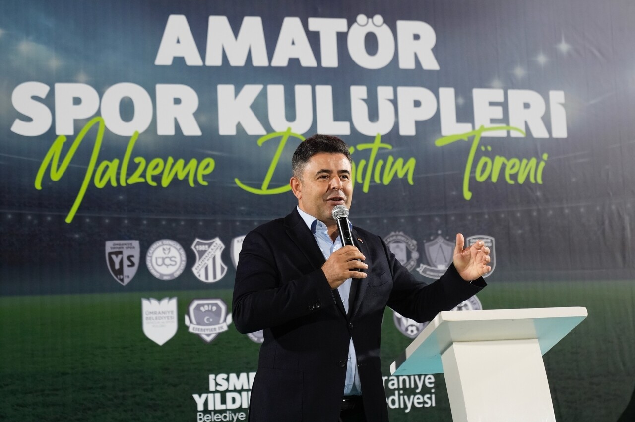 Millet Bahçesi Spor Tesisleri'nde düzenlenen etkinlikte, 15 amatör spor kulübüne 6 bin 60 adet spor malzemesi dağıtımı yapıldı.
