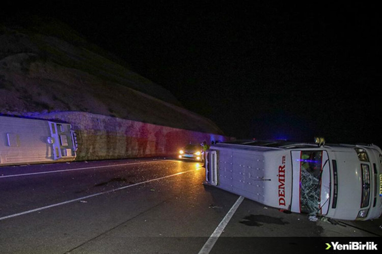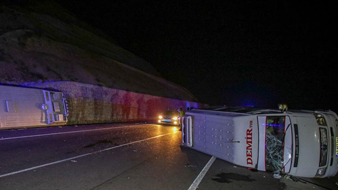 Çarpışmanın etkisiyle midibüs şarampole, minibüs ise yola devrildi.