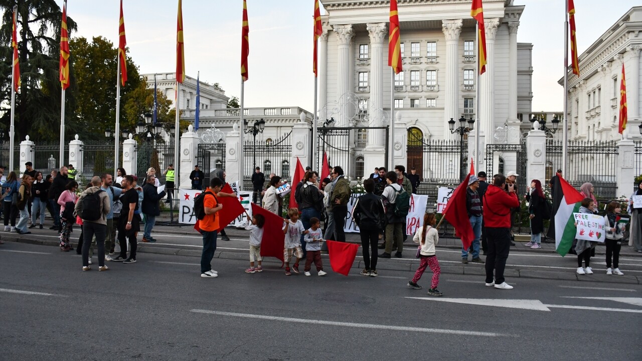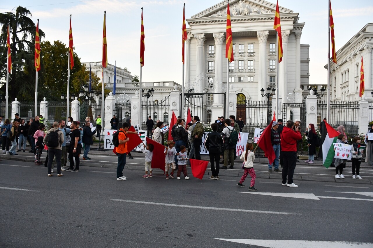 Gösteri, Kiril ve Metodiy üniversitesi öğrencileri, Filistin ile dayanışma girişimi ile farklı gruplar tarafından organize edildi.