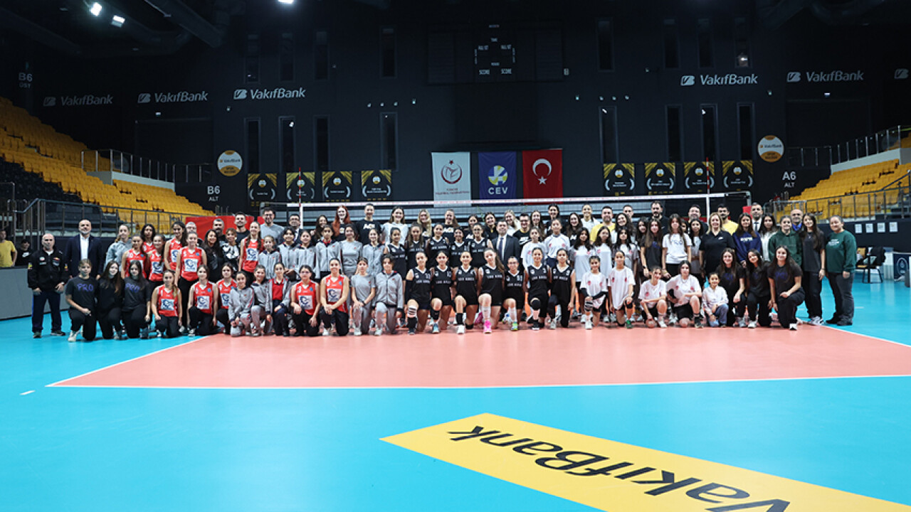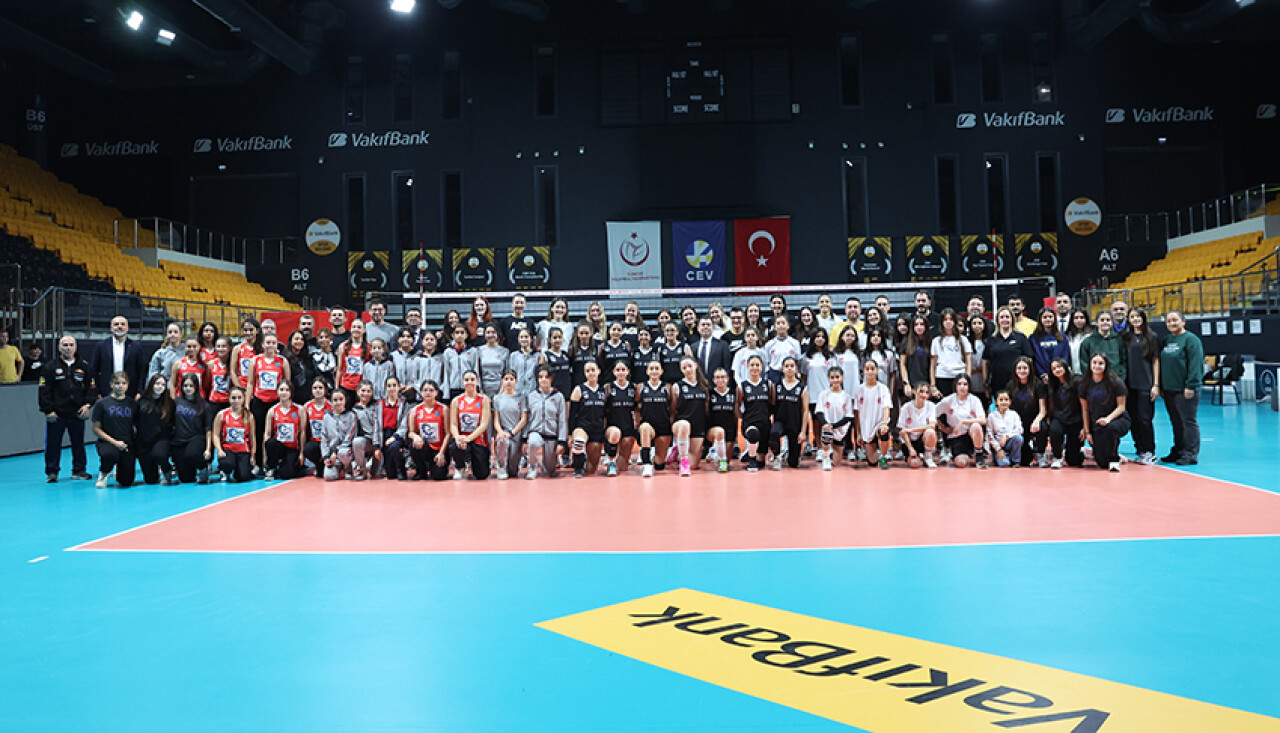 Dünyanın sayılı voleybol tesisleri arasında yer alan VakıfBank Spor Sarayı'nın atmosferini yaşayan öğrencilere A takım sporcuları antrenörlük yaptı. Orta okul öğrencileri, sadece voleybola dair teknik bilgileri değil aynı zamanda takım ruhu, disiplin, irade gibi kavramları da dünyaca ünlü oyuncularla beraber deneyimleme fırsatını buldu. Misafir öğrenciler, antrenman sonrasında kendilerine hediye edilen tişörtleri ve topları VakıfBank’ın tüm oyuncularına imzalattı. Öğrenciler, antrenmanın ardından düzenlenen yemekte takımla sohbet etme şansını yakaladı. VakıfBank’ın kız öğrencilere yönelik bu özel etkinliği, çocukların gelecek hayallerine ışık tutarken, voleybol sevgilerini pekiştirdi. Sporcularla tanışıp onların tecrübelerinden yararlanma fırsatı bulan öğrenciler, voleybol dolu, ilham verici bir gün geçirdi.