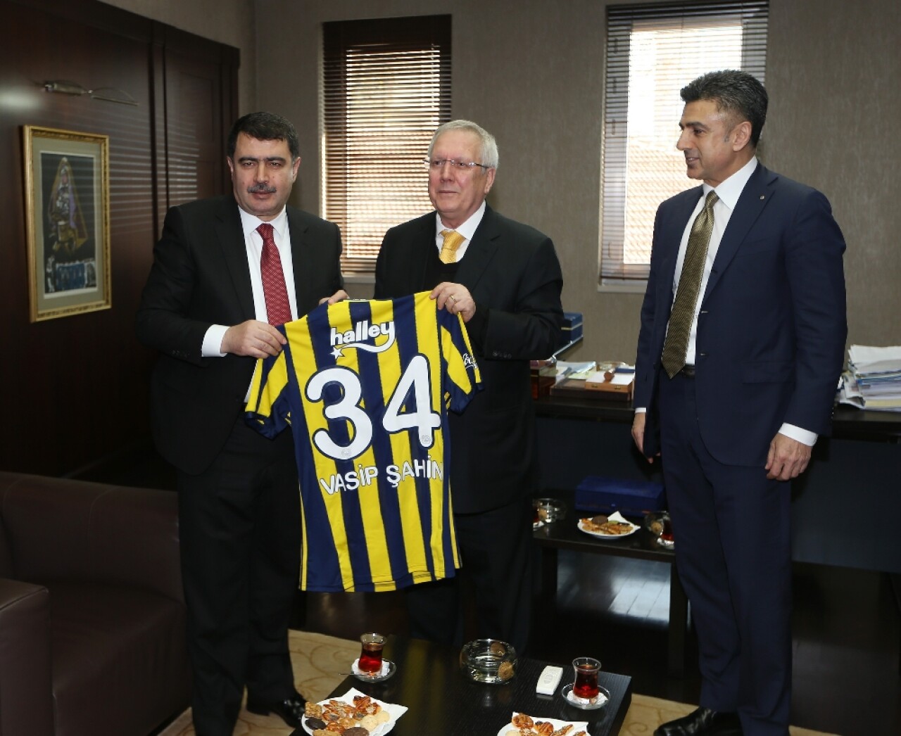 İstanbul Valisi Vasip Şahin’in Fenerbahçe ziyaretinde Başkan Aziz Yıldırım’ın dışında sarı-lacivertlilerin Genel Sekreteri ve Basın Sözcüsü Mahmut Uslu, Asbaşkanlar Şekip Mosturoğlu, Önder Fırat, Ozan Balaban ile SBK Holding ve Borajet Yönetim Kurulu Başkanı Sezgin Baran Korkmaz da hazır bulundu. Ziyaretin sonunda Aziz Yıldırım, Vali Şahin’e 34 numaralı yazalı Fenerbahçe forması hediye etti.