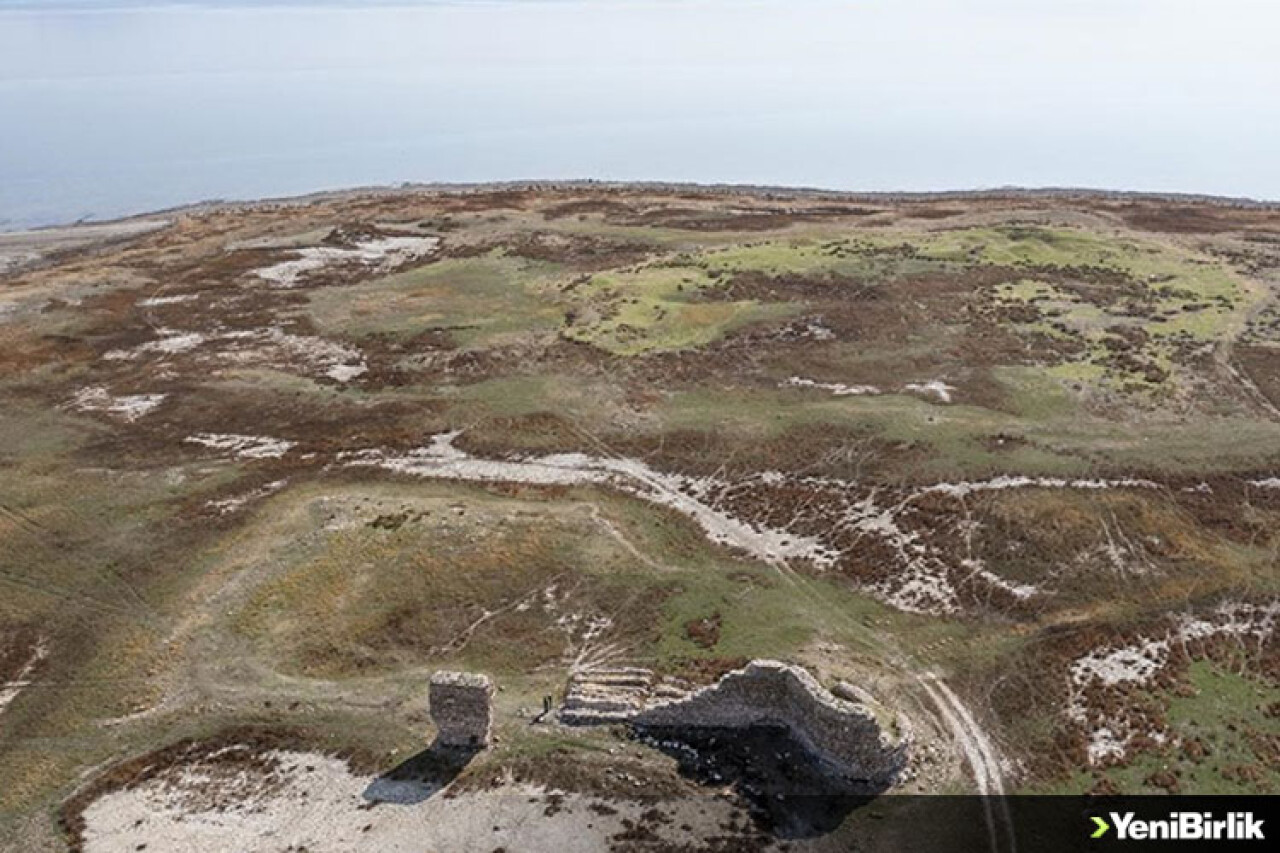 Van Gölü'nde çekilme sürdükçe eski yapıların kalıntıları ortaya çıkıyor