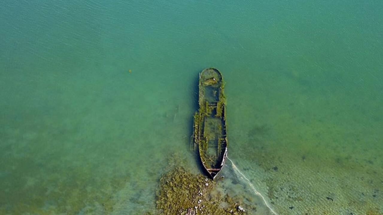 Bu değişikliğe bağlı olarak su altındaki bazı yapıların gün yüzüne çıktığını belirten Akkuş, batık geminin de bunlardan biri olduğunu aktardı.