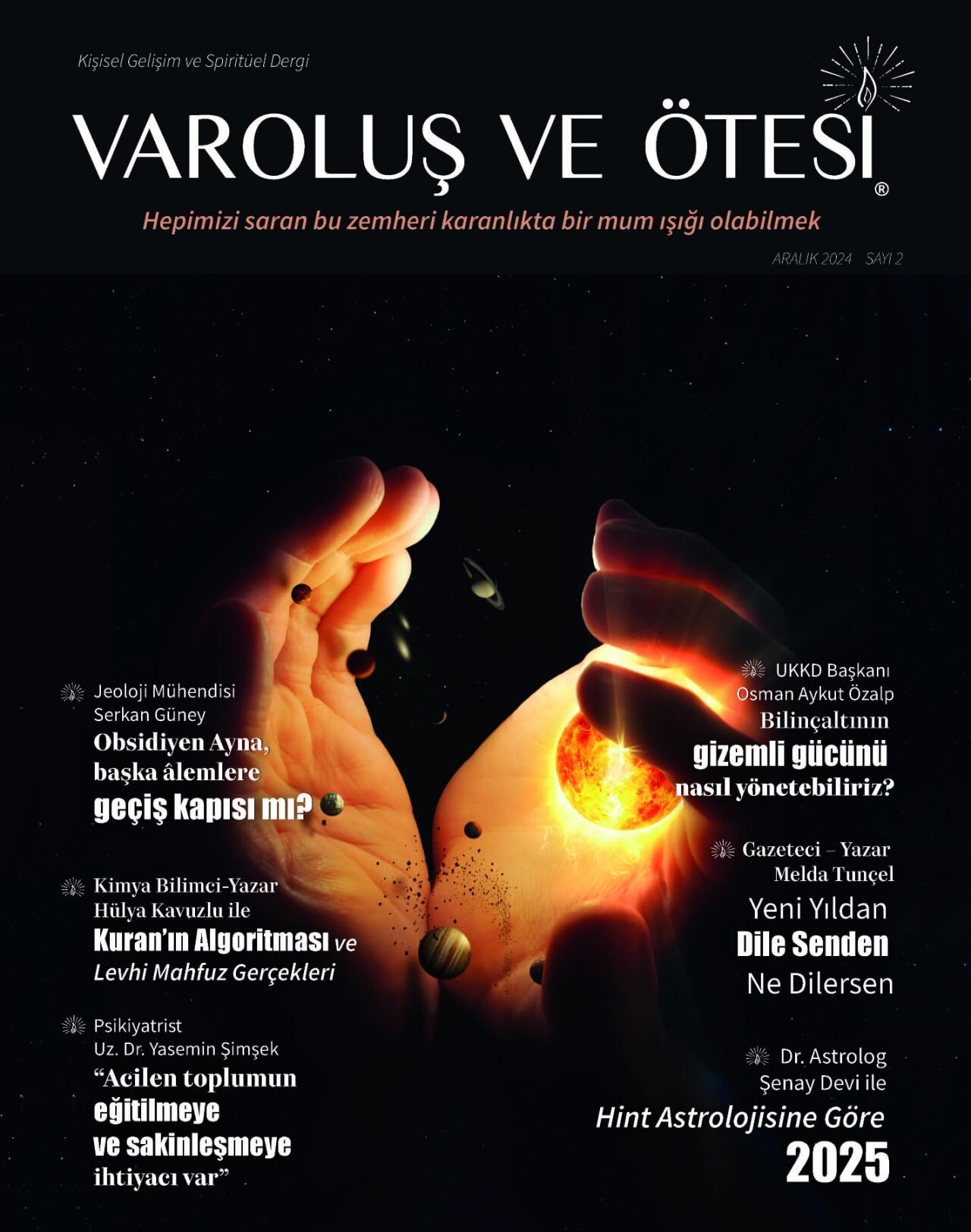Varoluş ve Ötesi, bilim, ilim, kadim bilgiler, felsefe, arkeloji, mitoloji, tarih, astroloji, inanç ışığında özel konukları ve içerikleriyle okuyucularına farklı bir bakış açısı sunmayı hedefliyor. Spiritüel Araştırmacı ve Nefes Koçu Simge Aytaş Danışmanlığında Varoluş ve Ötesi, kişisel gelişim, farkındalık, spiritüel uygulamalar alanında Ocak 2025 sayısından itibaren Fizik ve Felsefe insanı Araştırmacı Yazar Işık Kızıltuğ'un da katılımıyla çok değerli araştırmacı, yazar ve eğitmenlerden oluşan güçlü yazar kadrosu ve özel röportajlarıyla yayında olacak.