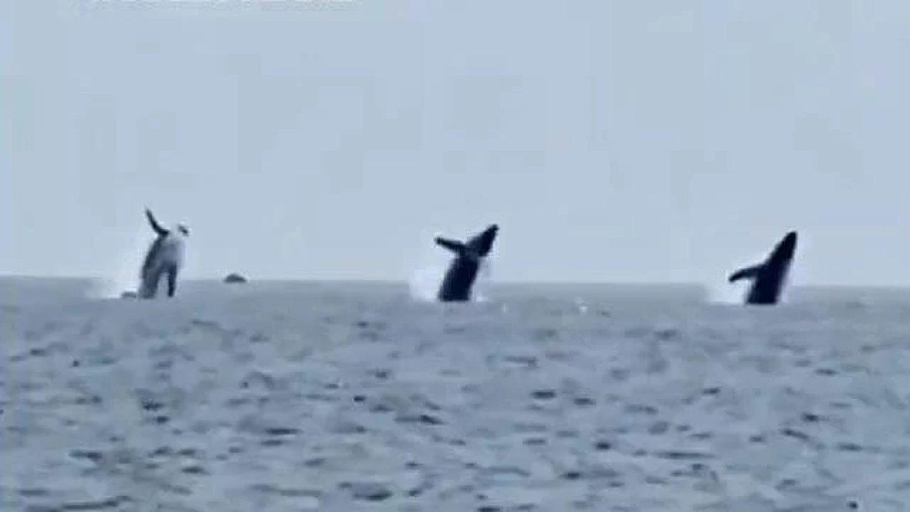 Balinalar daha sonrasında aynı anda dans eder gibi denizde hareket etmeleriyle birlikte ortaya eşsiz görüntüler çıktı.