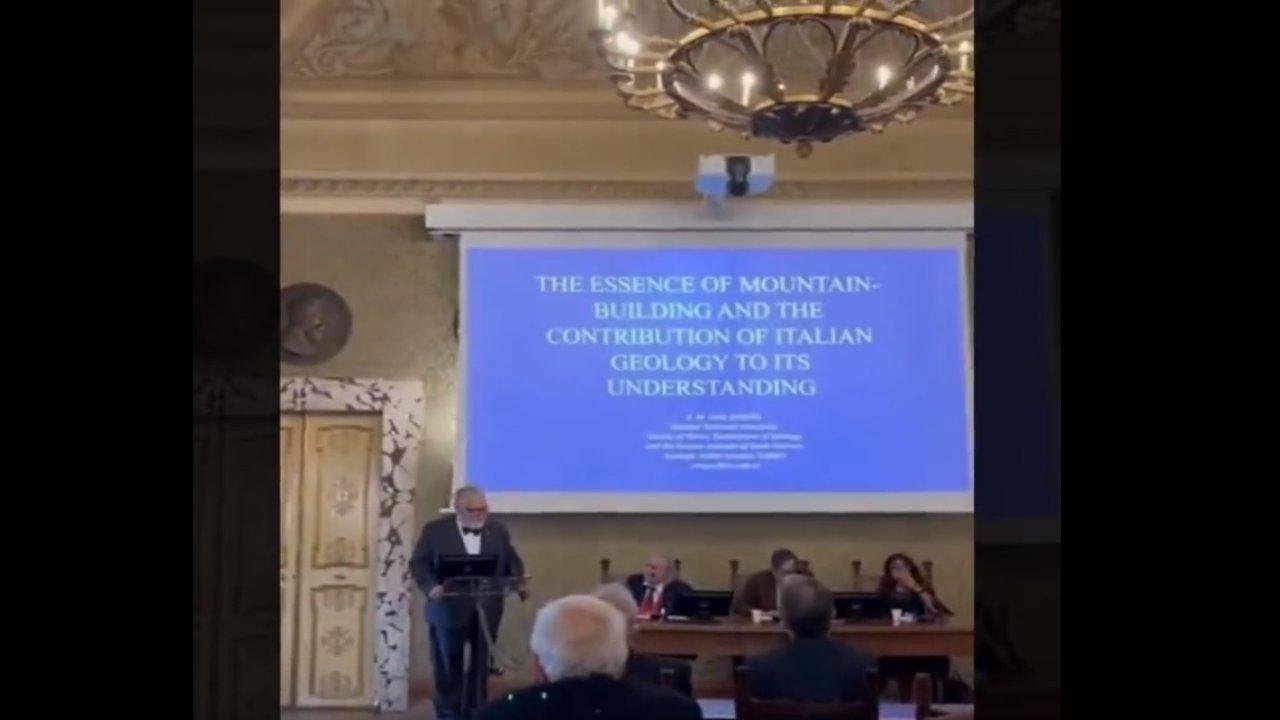 Şengör, konuşmasına başlamadan önce gelen bilim insanlarından "Bu benim buradaki ilk konuşmam ama bugün ölen bir adamın anısına saygı duruşunda bulunmak üzere bana bir dakika izin vermenizi isteyeceğim.