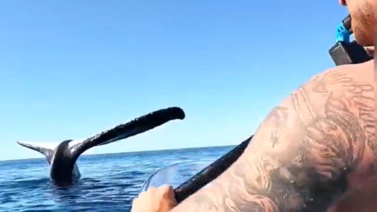 Avustralyalı YouTuber Brodie Moss, okyanusta kambur bir balinanın amuda kalkma anını görüntüledi.