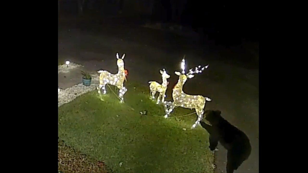 Amerika Birleşik Devletleri'nin Florida eyaletinde yılbaşı için ışıklandırılan geyik figürleri, kış uykusuna yatamayan bir ayı tarafından parçalandı.