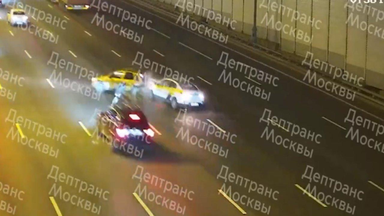 Rusya’da Moskova Çevre Yolu’nda meydana gelen olayda, 6 şeritli yolun tam ortasında bozulan bir araç olduğu görülüyor. Aracın şoförü arızayı gidermeye çalışmak için otomobilin önündeyken tam o esnada arkadan gelen bir araç arızalı arabaya sert bir biçimde çarpıyor.