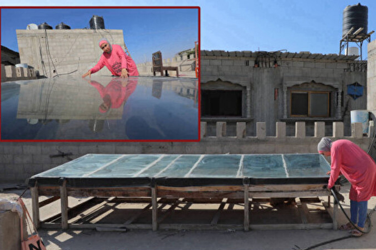 İsrail'in 7 Ekim 2023'ten bu yana düzenlediği saldırılarda altyapının tahrip olması, yakıt olmadığı için deniz suyu arıtma tesislerinin çalışmaması ve kuyulardan da su çekilememesi nedeniyle Gazze'nin tamamında büyük bir su kıtlığı yaşanıyor. Han Yunus'ta yaşayan 50 yaşındaki Ziraat Mühendisi İnas El-Gul, basit imkanlarla kurduğu güneş enerjisiyle çalışan bir düzenekle deniz suyunu arıtıp içilebilir hale getiriyor.