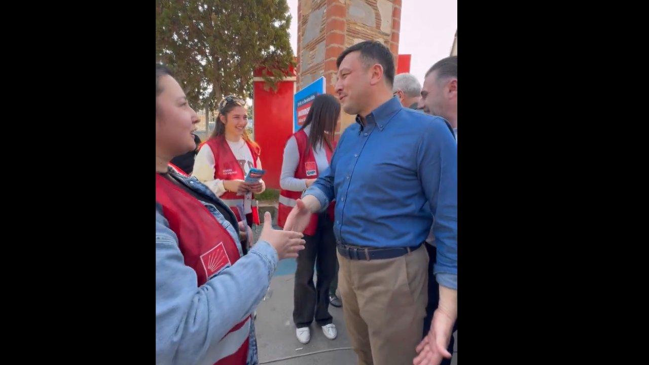 AK Parti İzmir adayının CHP standını ziyaretinde yaşanan ilginç anlar kameralara saniye saniye yansıdı.